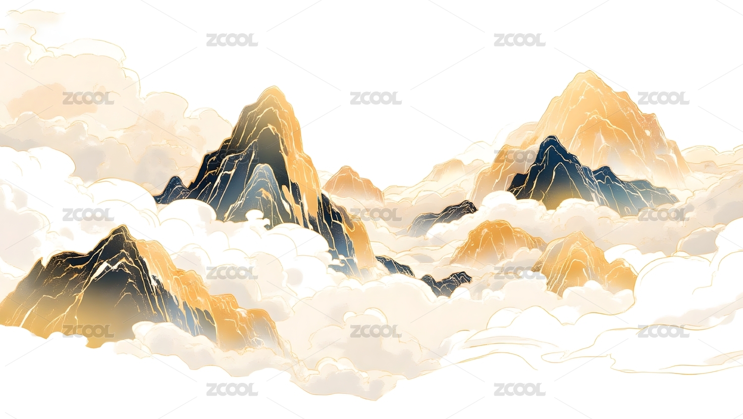 云海山峦水墨画