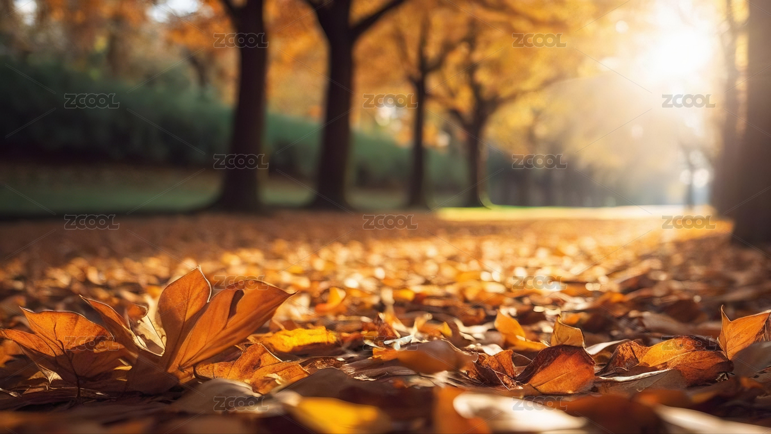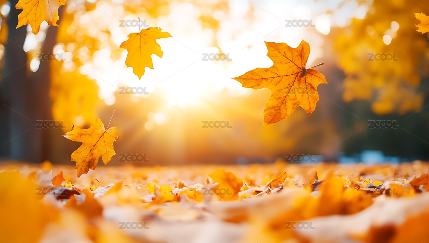 秋天,树叶,石路,公园,自然,户外,阳光,树木,地面,黄色