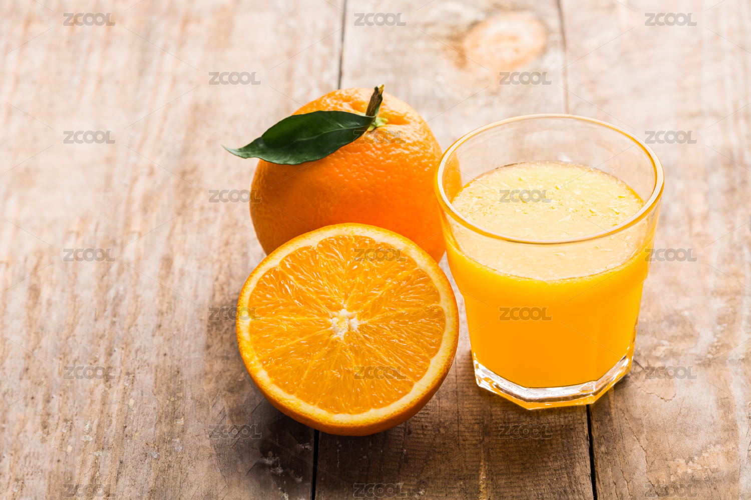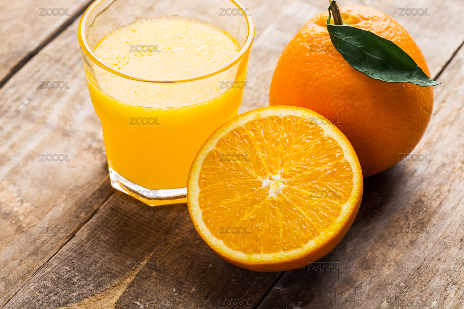 橙汁,橙汁饮料,橙子,静物,果汁,一杯,切开,绿色,叶子,木板