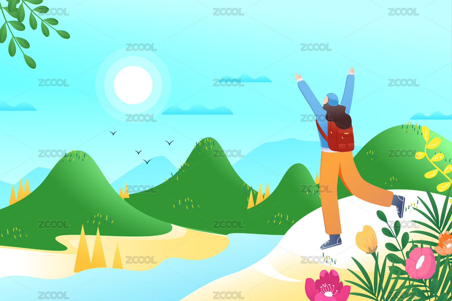 夏天人物毕业旅行夏至节气旅游户外出行插画