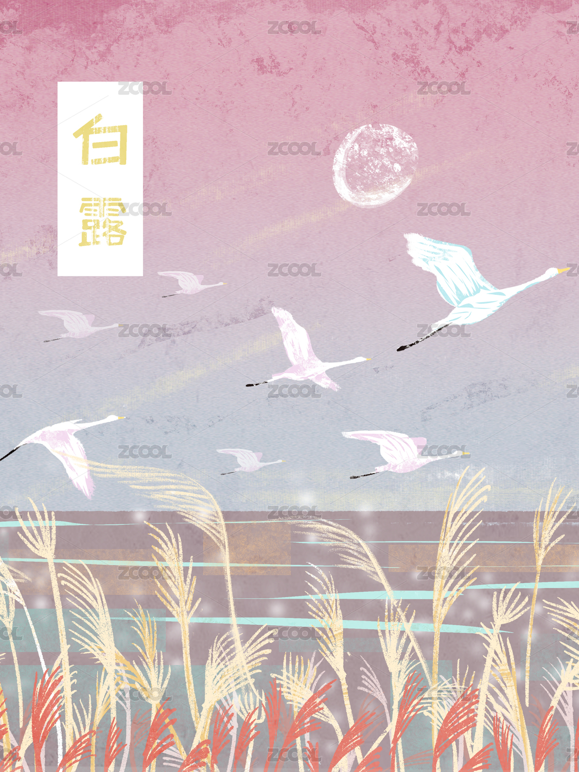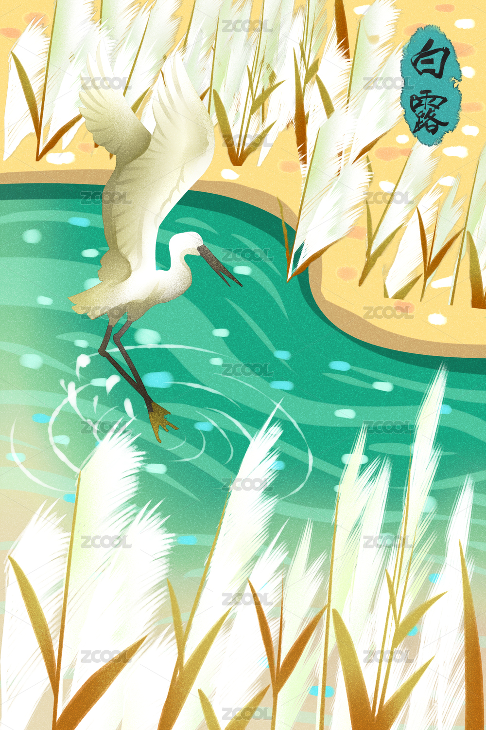 白露,秋天,白鹭,芦苇,秋季,白鹤,处暑,二十四节气,海报,寒露