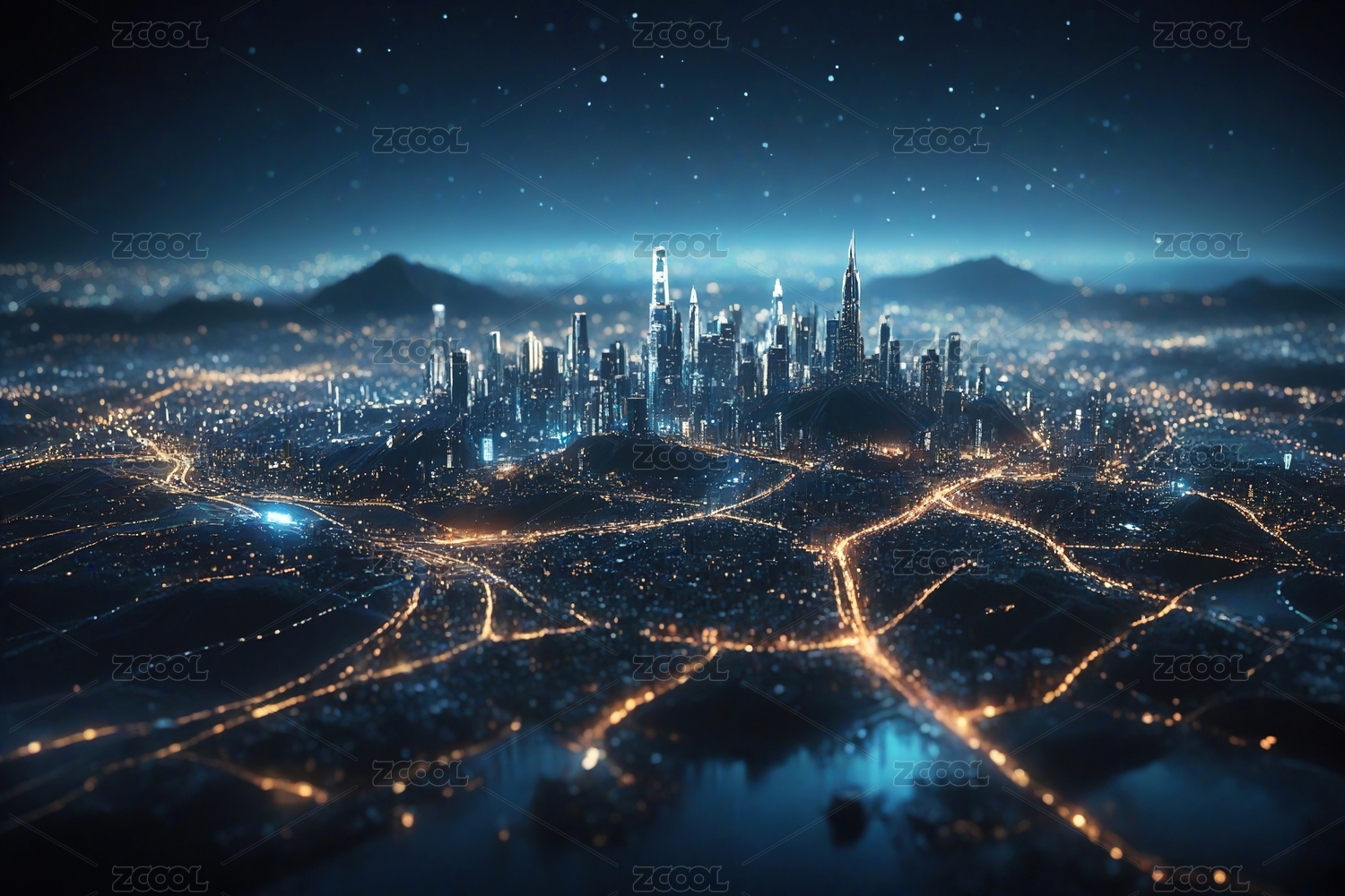 未来,都市,夜景,建筑,灯光,道路,交通,流光,模糊,星空