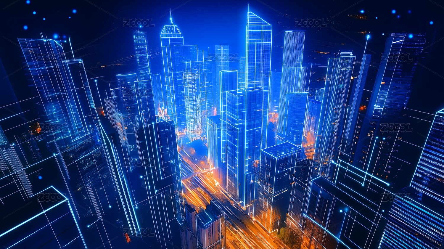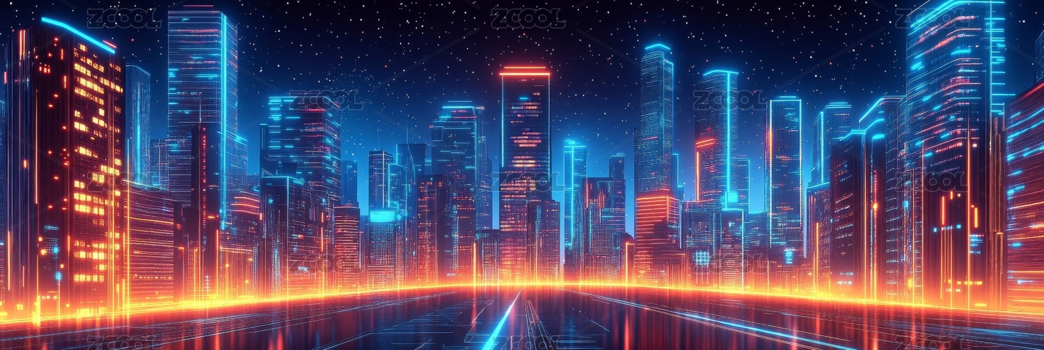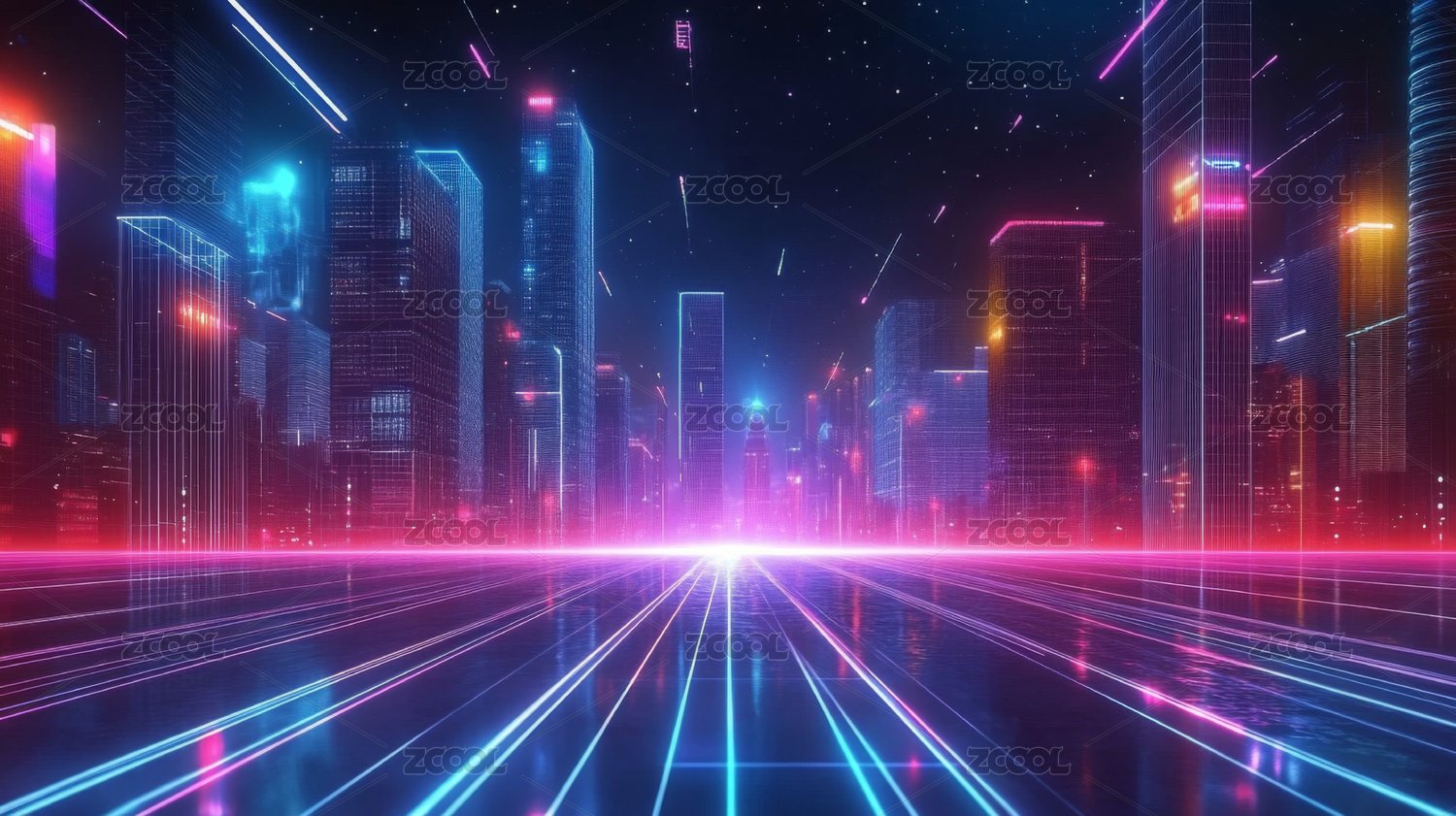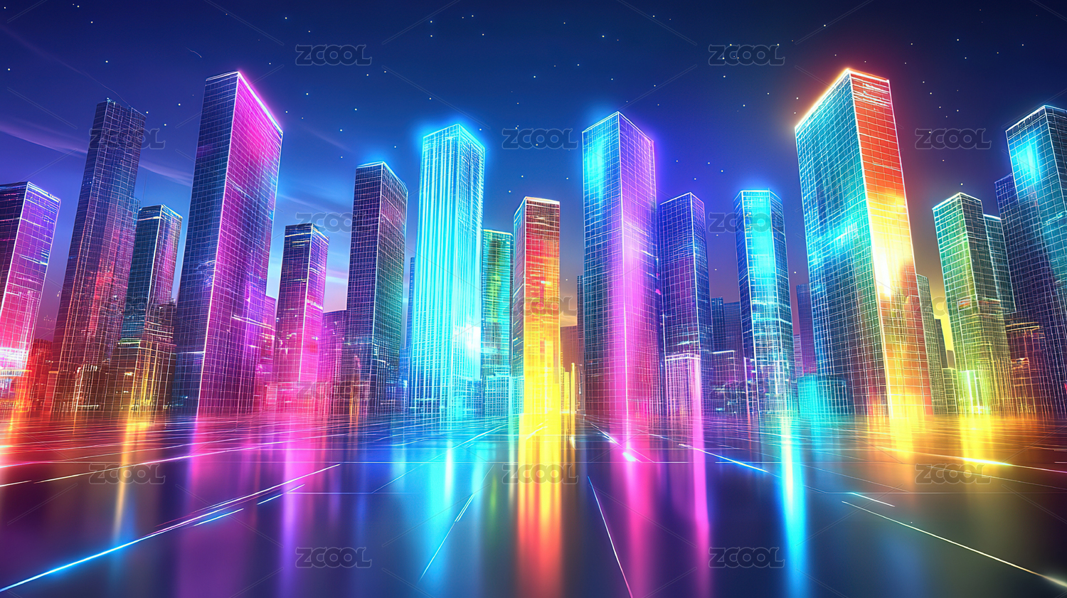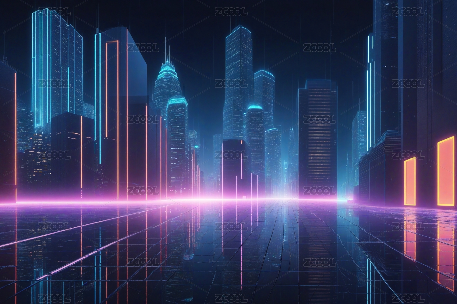 未来,城市,霓虹灯,夜晚,摩天大楼,反射,光线,虚拟,现实,科幻
