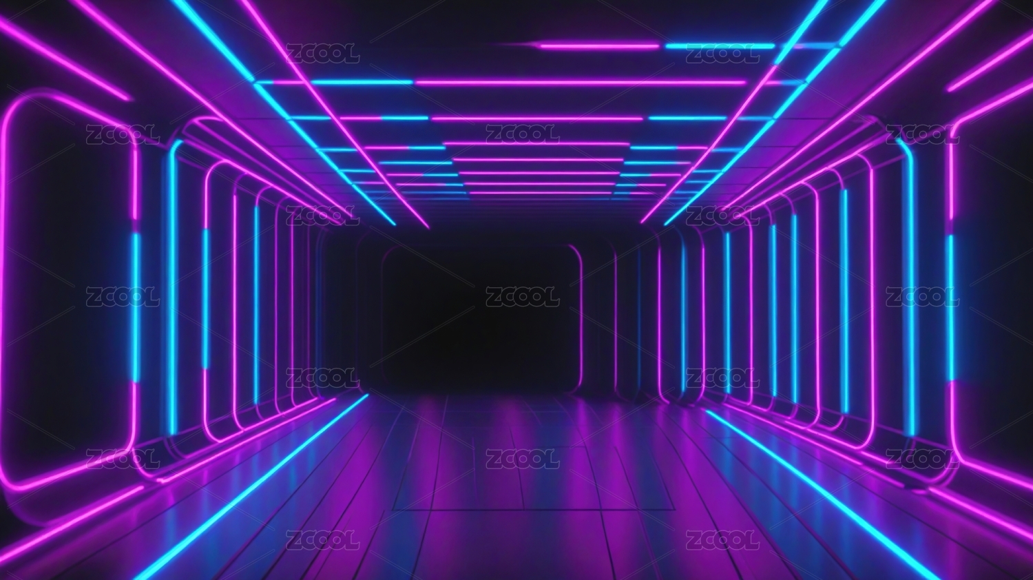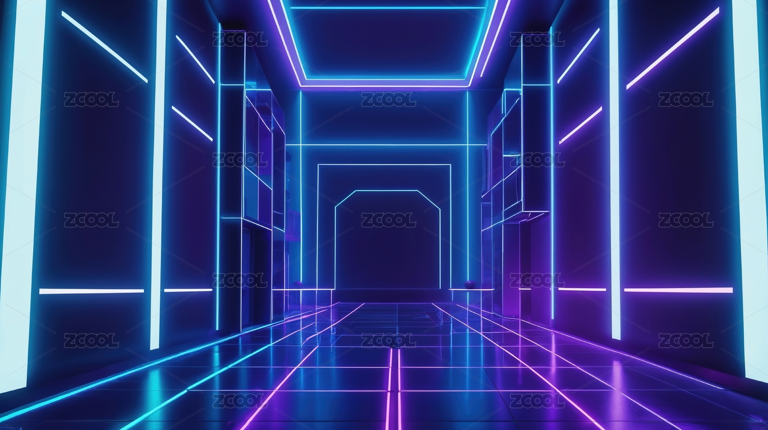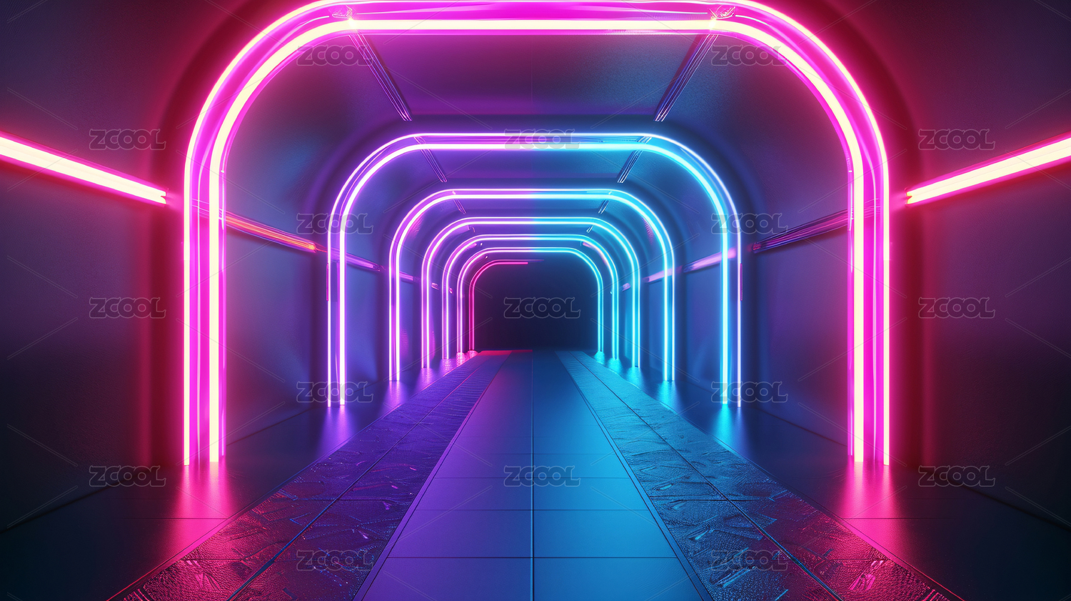 霓虹灯,隧道,光线,蓝色,紫色,未来感,科幻,抽象,设计,模糊