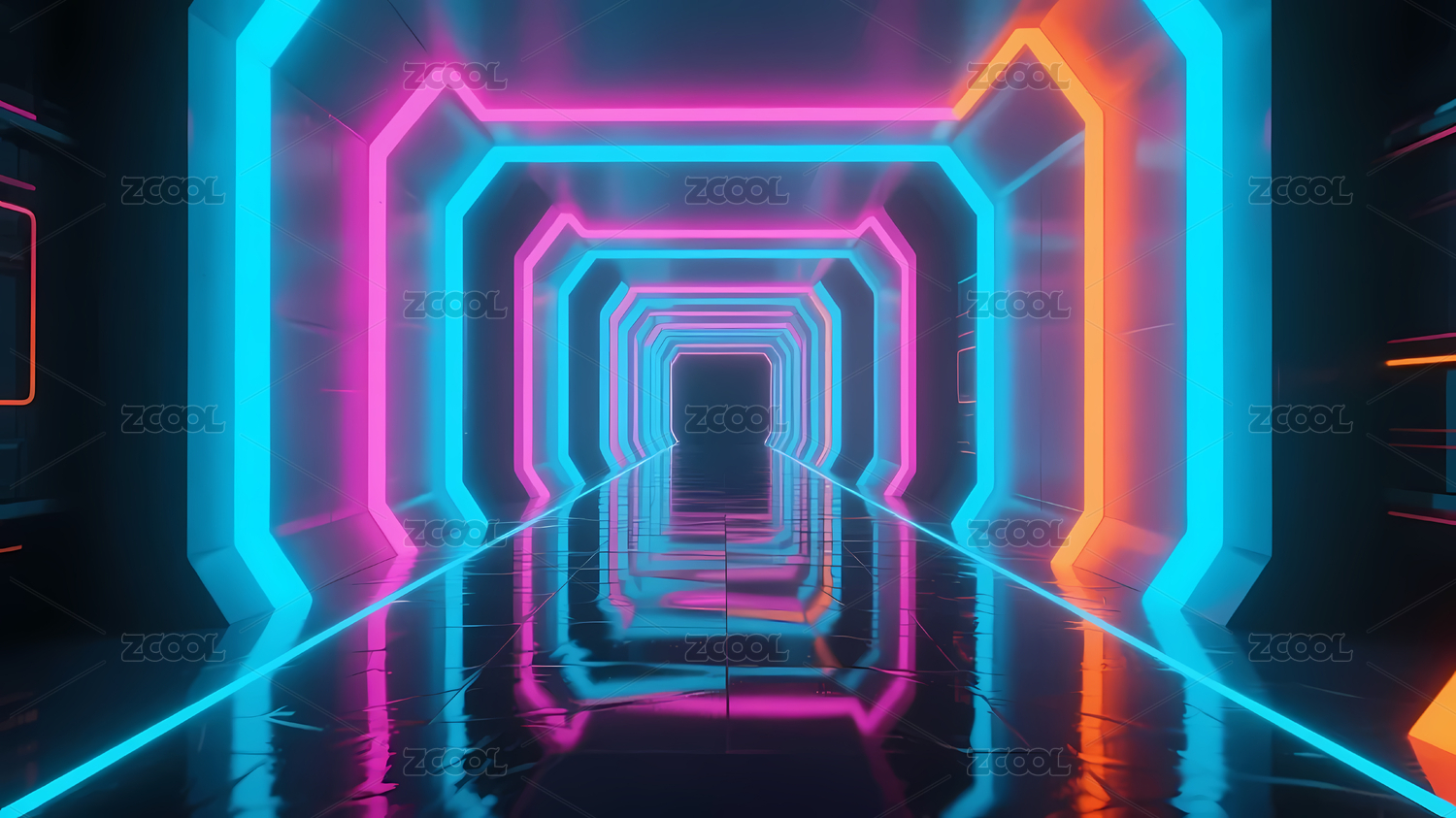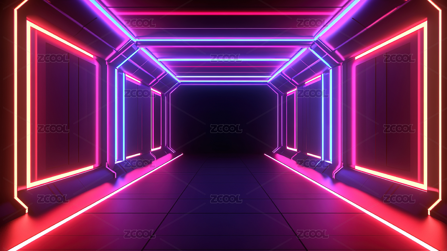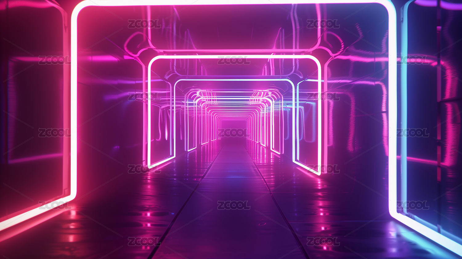 霓虹灯,隧道,光线,蓝色,紫色,未来感,科幻,抽象,设计,模糊