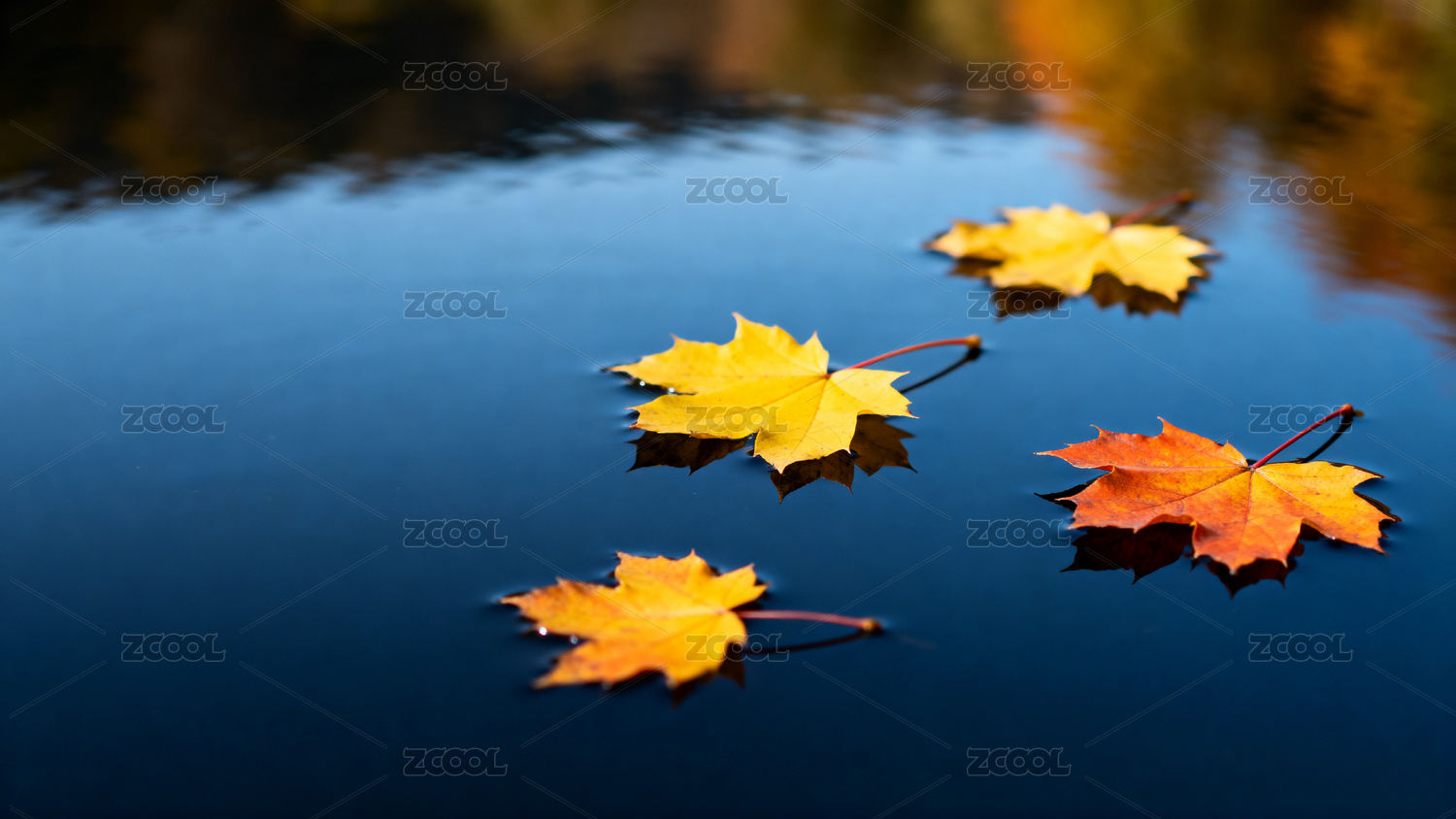 秋叶,水面,倒影,黄色,枫叶,季节,秋天,自然,风景,美丽