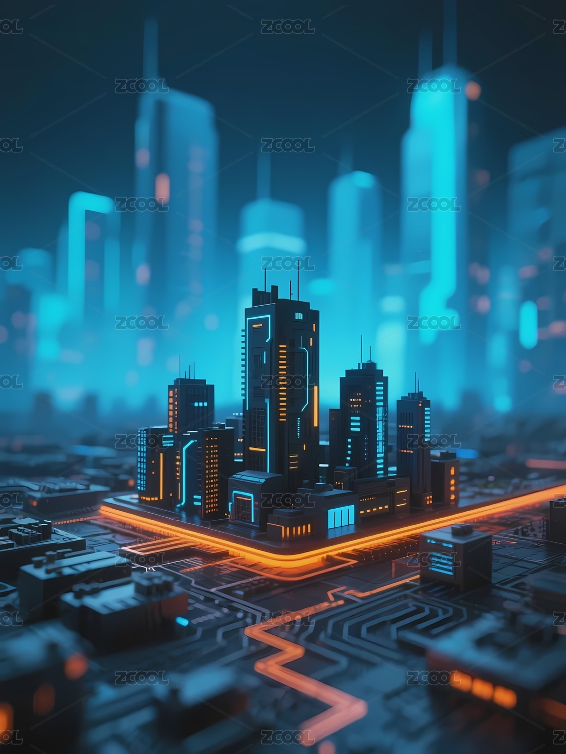 手机,城市,微型,建筑,楼房,夜景,灯光,反射,玻璃,窗户