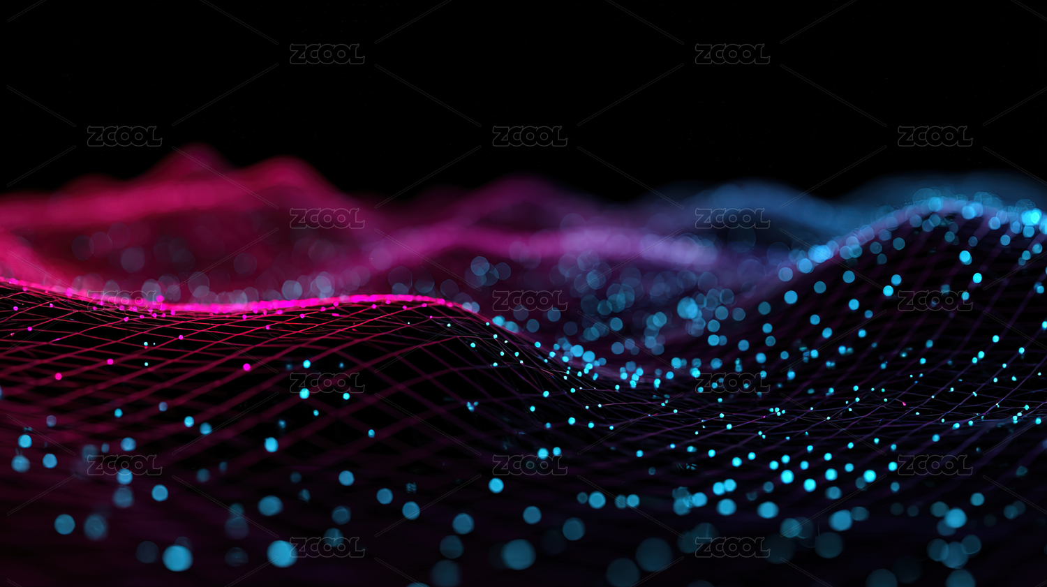 蓝紫光点波浪网格与未来氛围