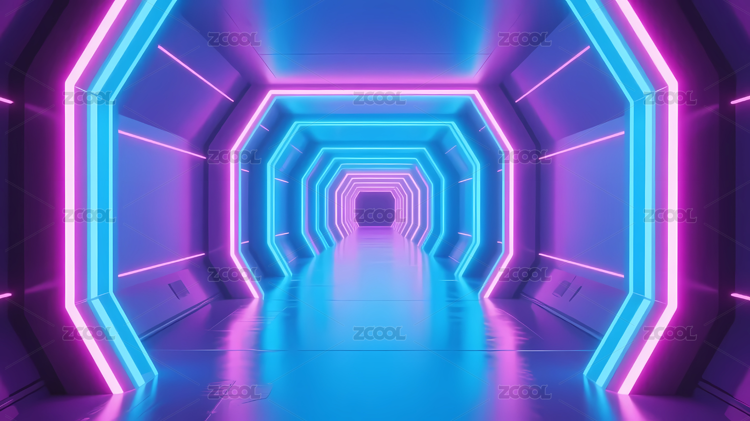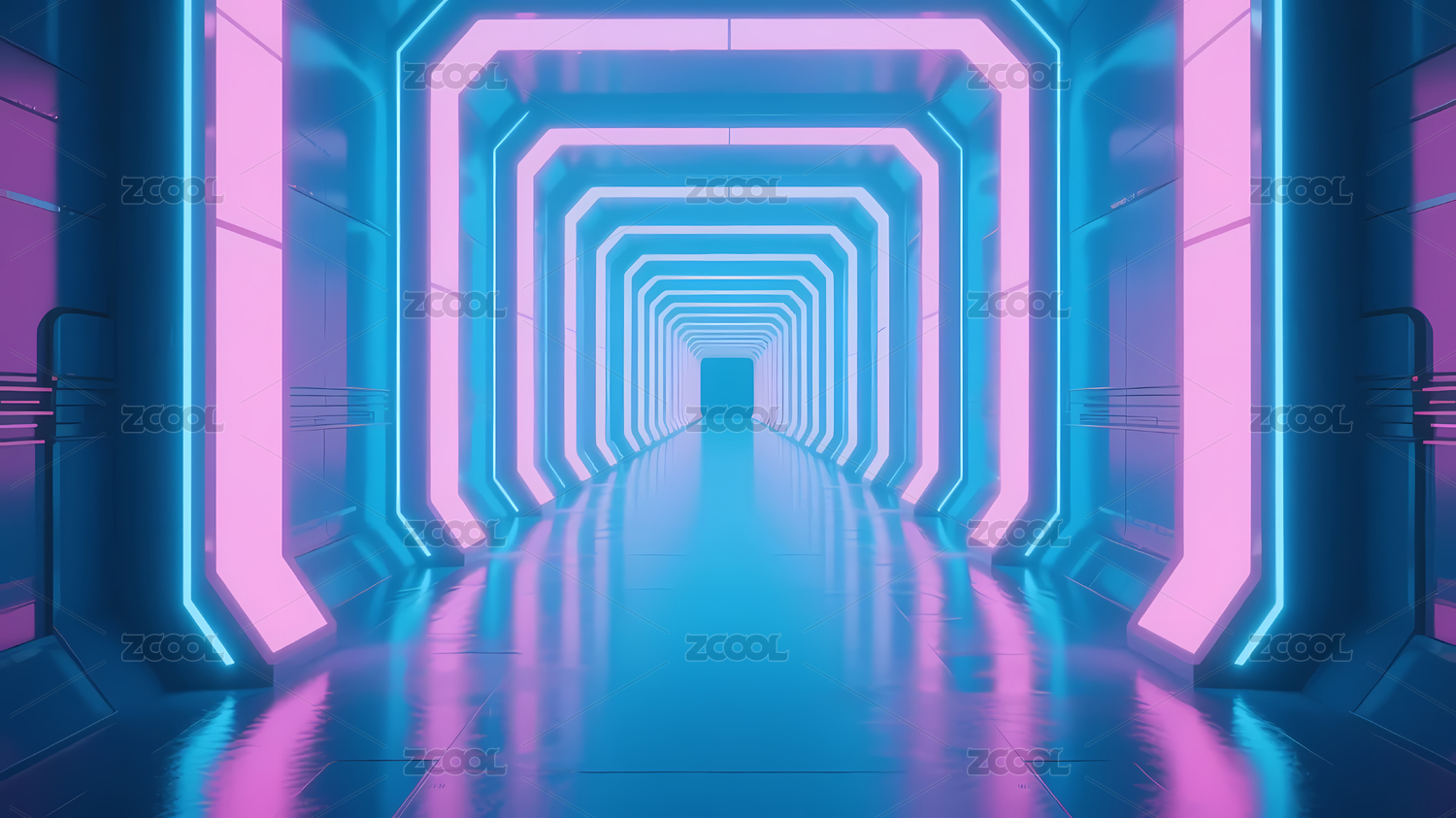 蓝粉霓虹走廊与深色背景