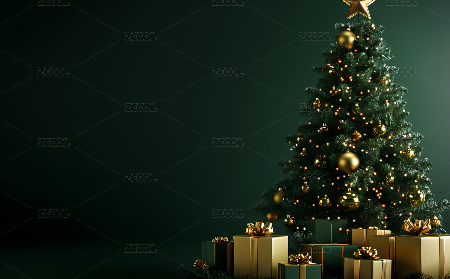 绿色调装饰圣诞树圣诞背景