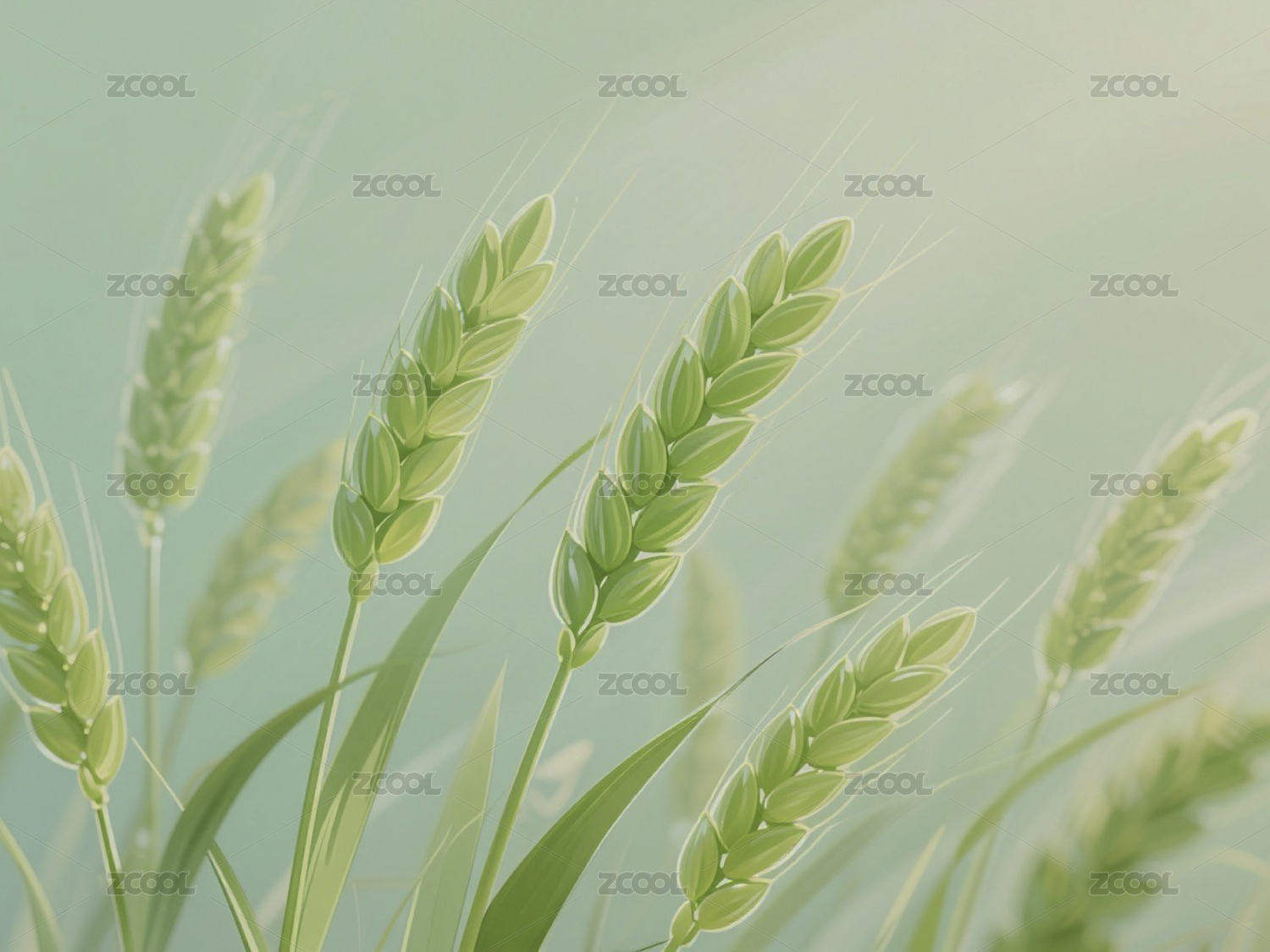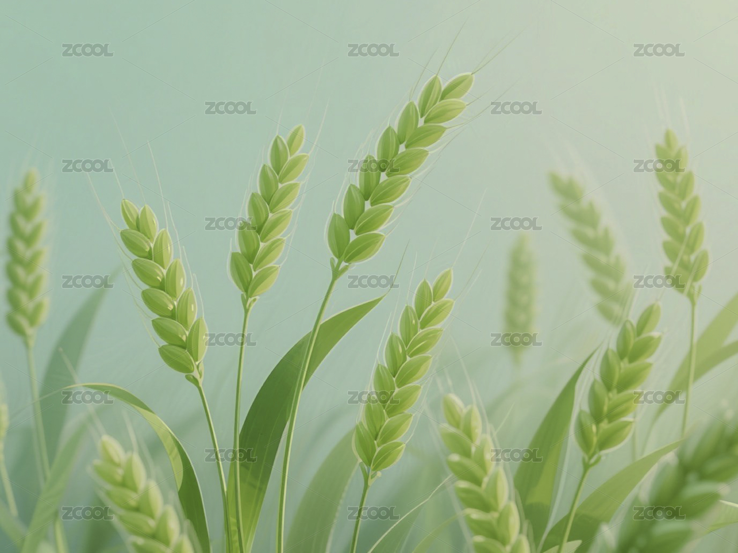 半透明绿色麦穗插画背景