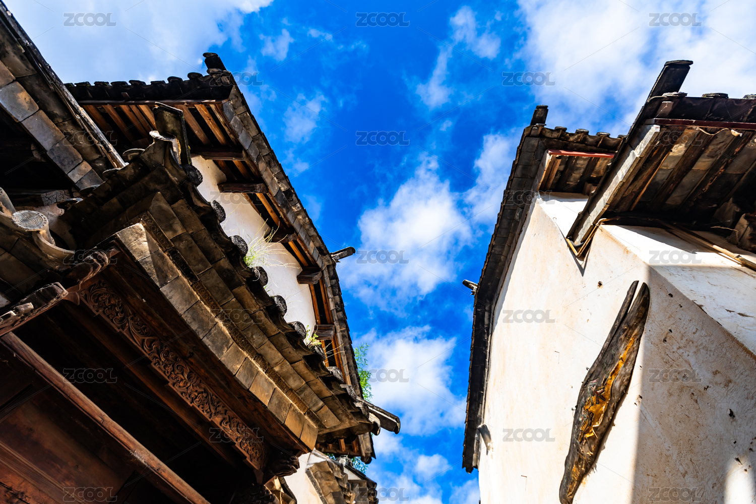 中国,浙江省,金华市,浦江县,潘周家,祠堂,山墙头,木制结构,砖墙头,蓝天