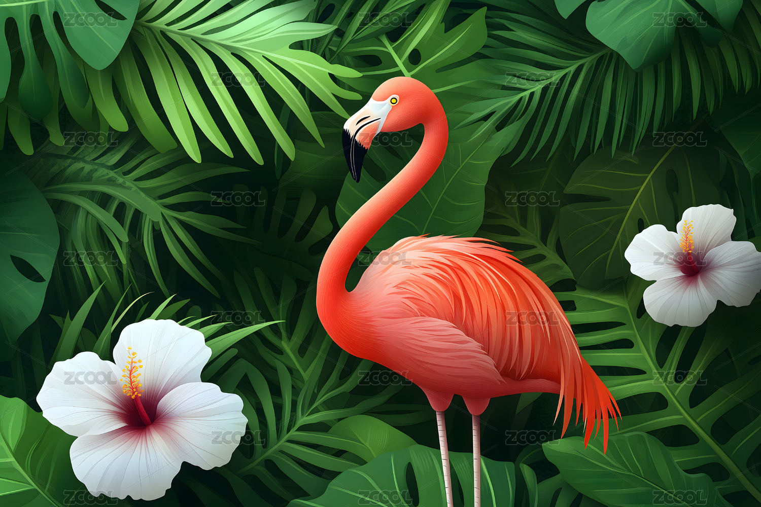 火烈鸟,热带叶子,黑色背景,粉花,花卉,黑背景,壁纸包装,印花图案