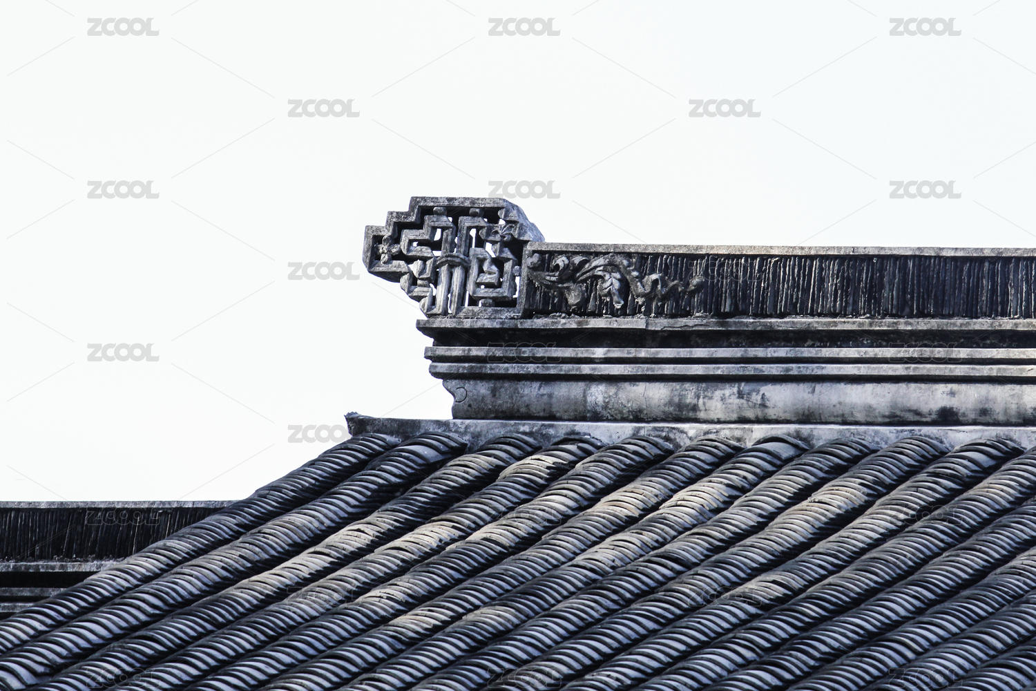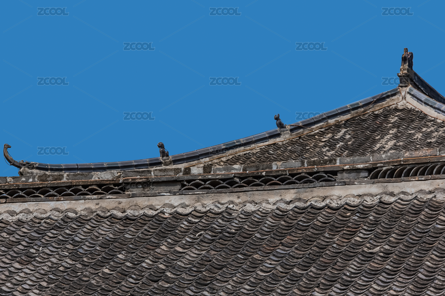 中国浙江宁波慈城火神庙硬山顶正脊、山墙与青瓦特写