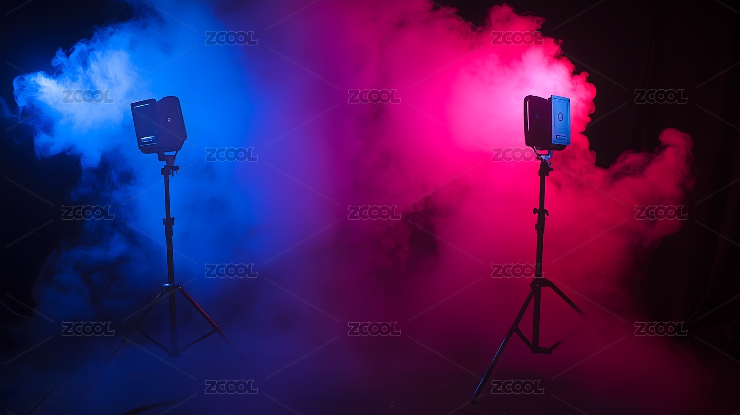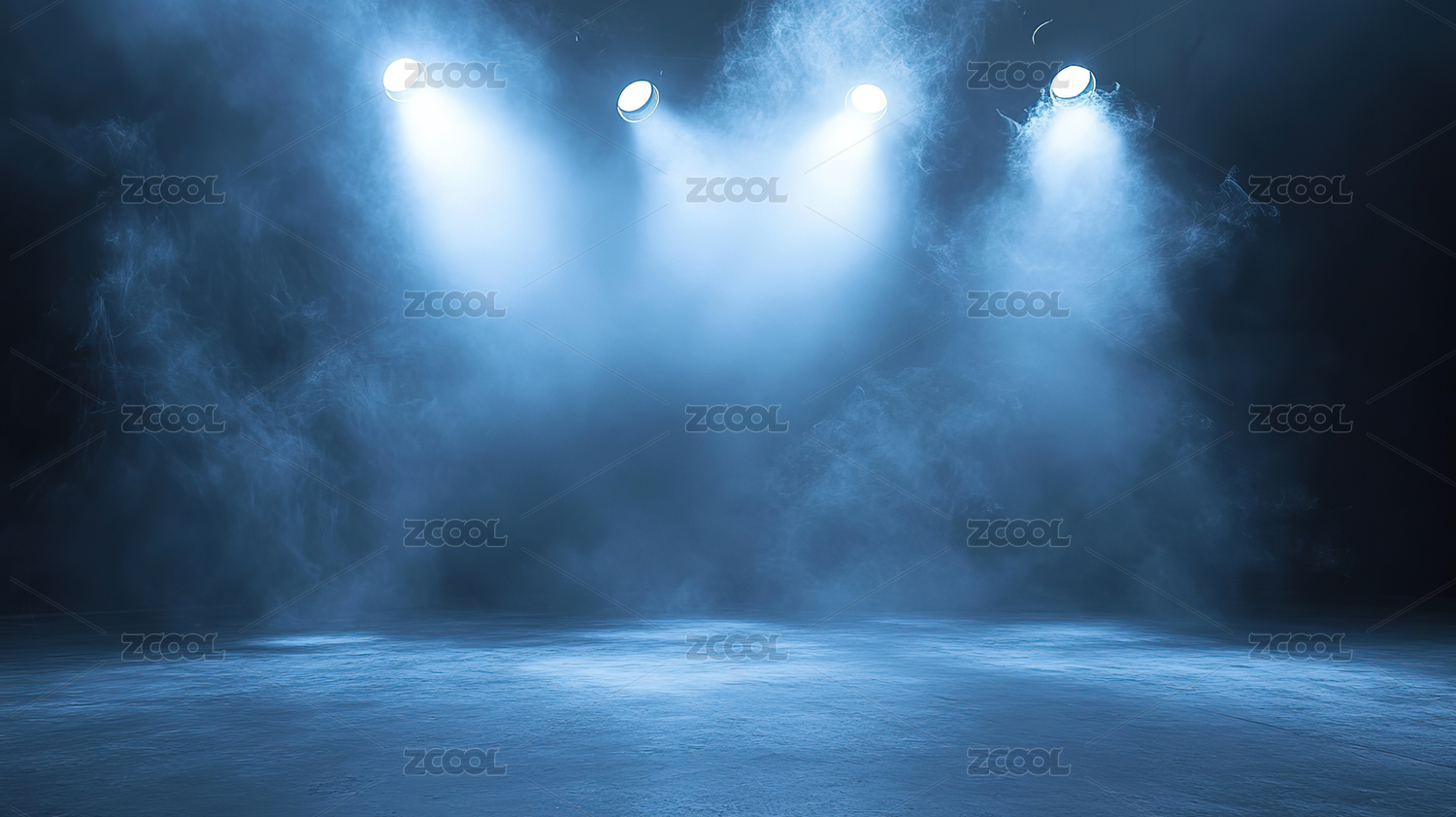 蓝色烟雾与聚光灯下的舞台氛围