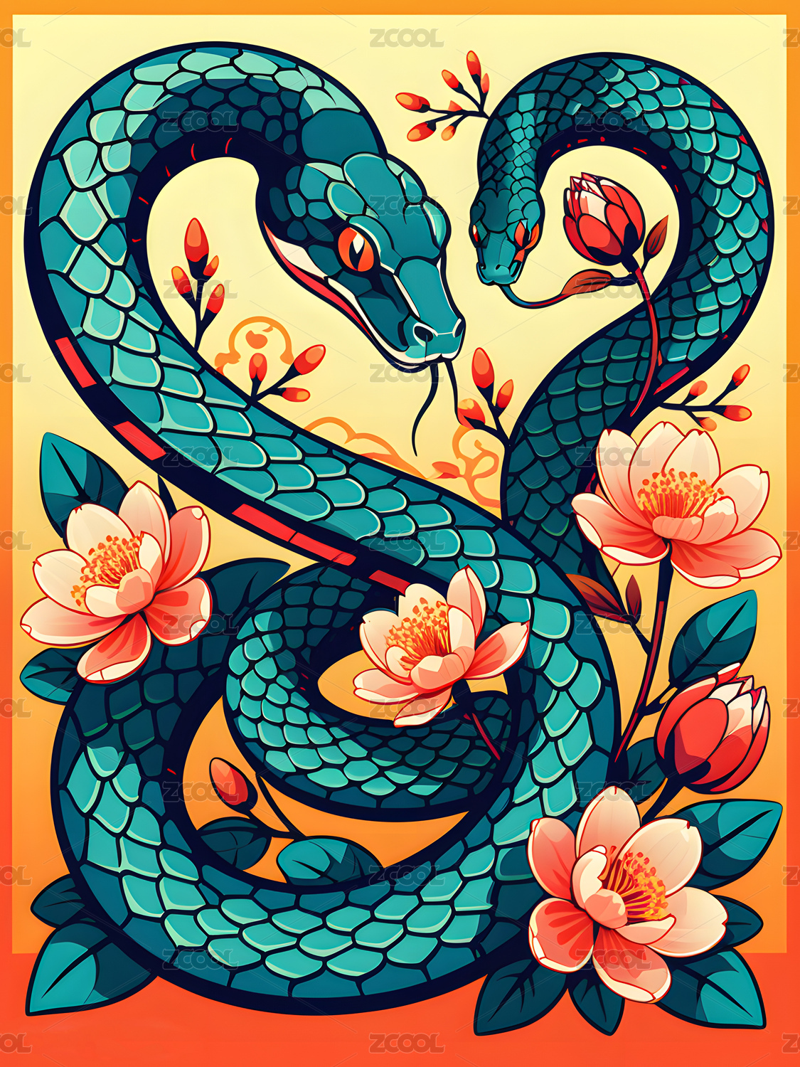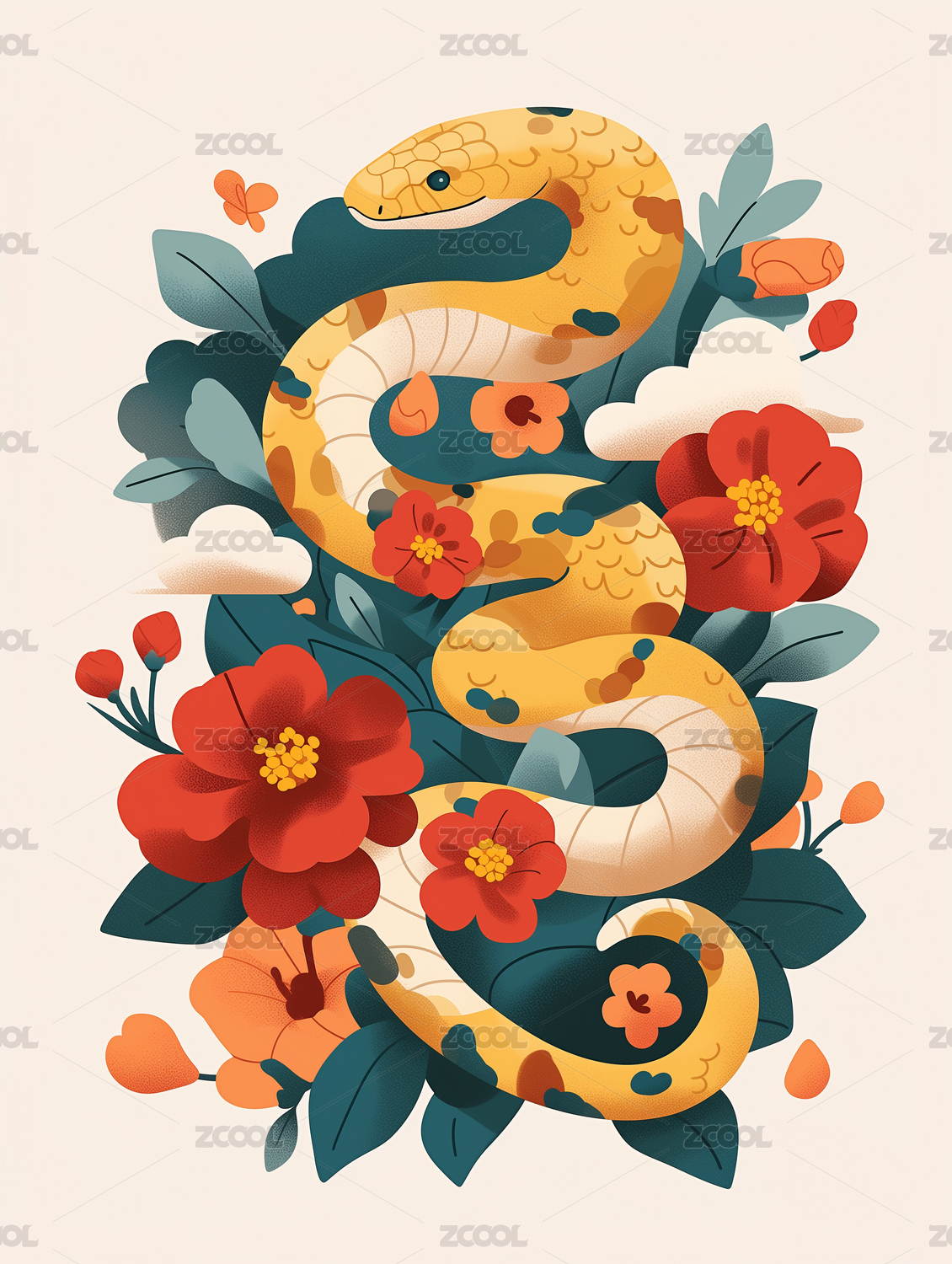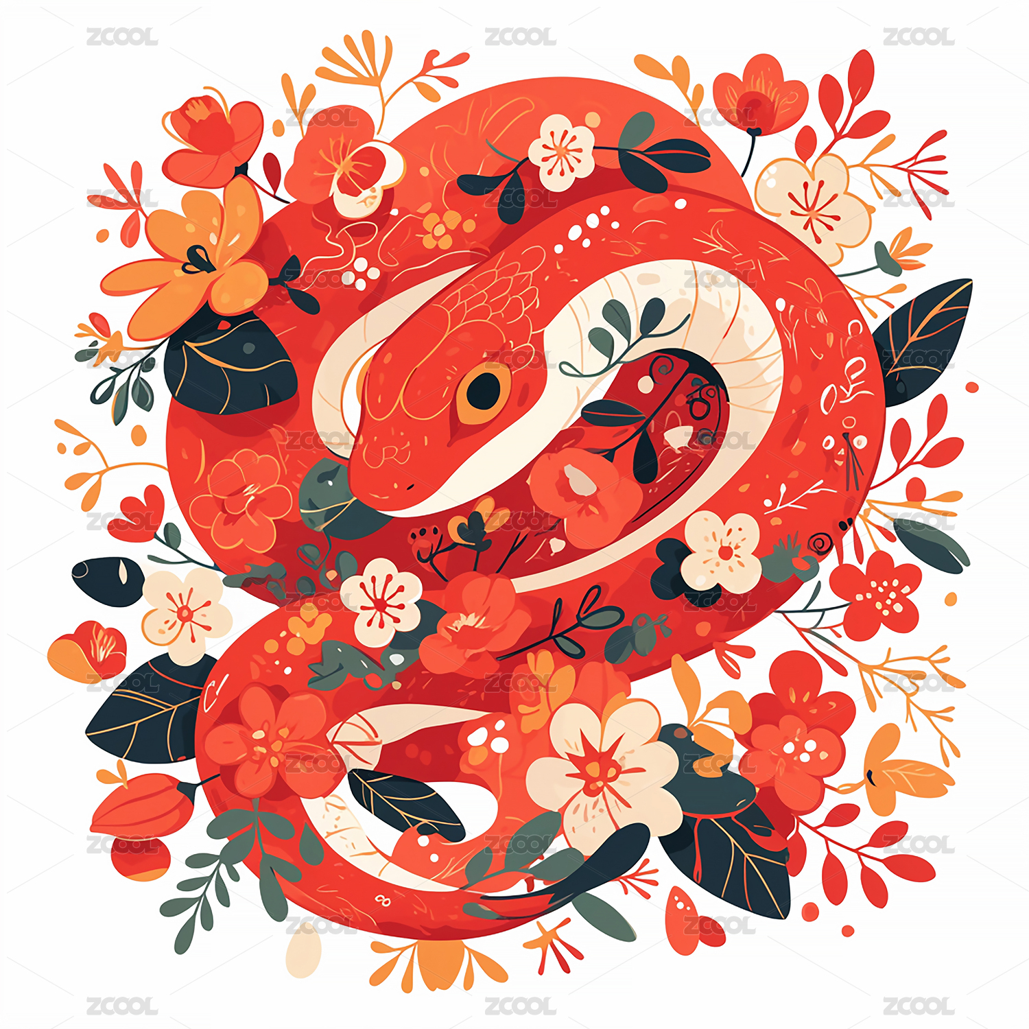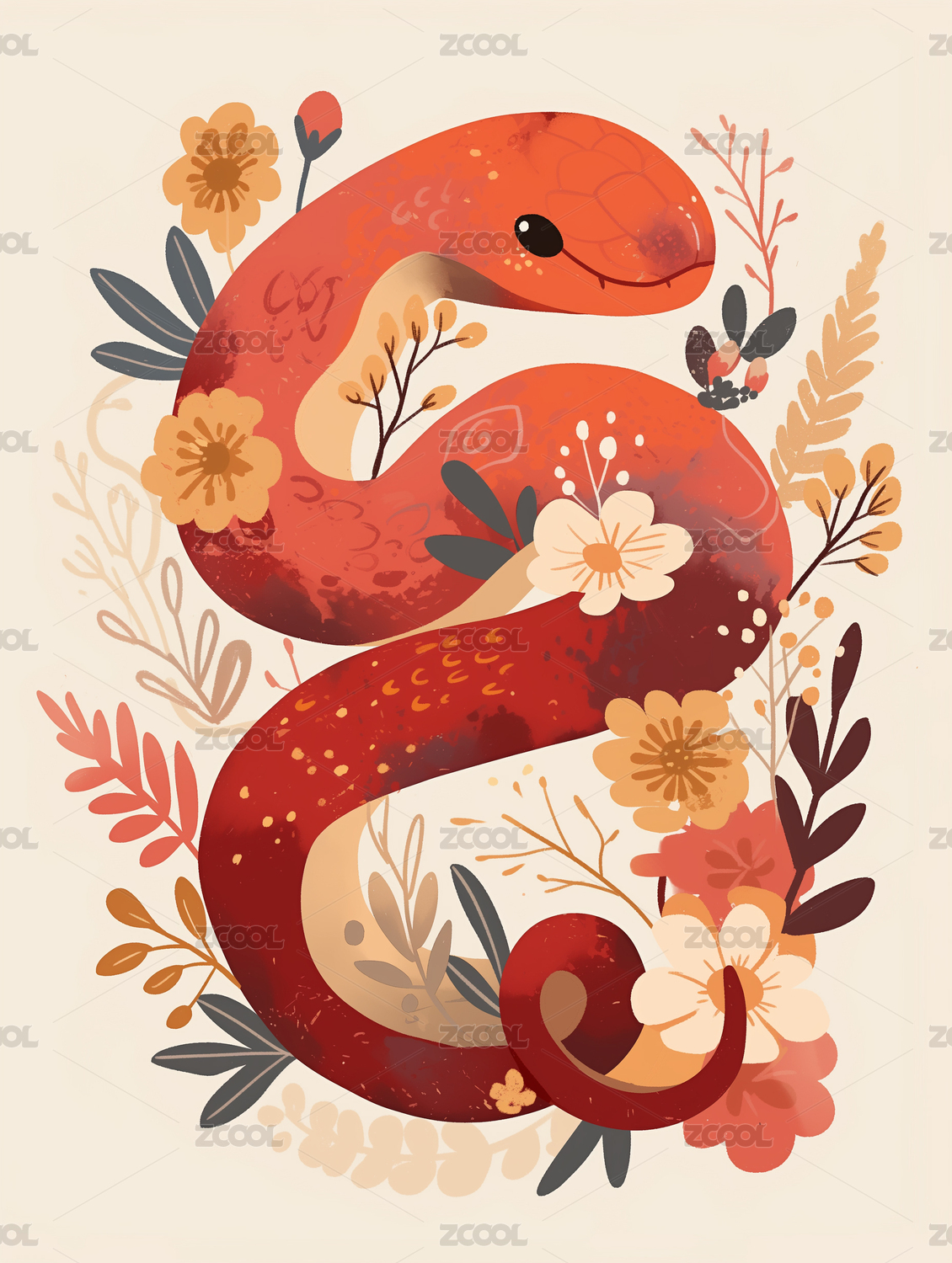 蛇年花卉艺术插画