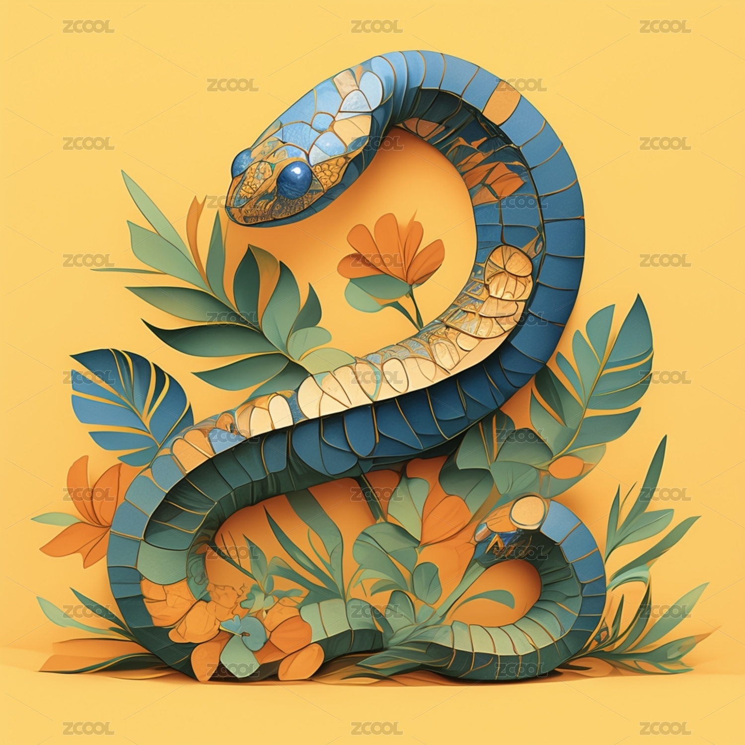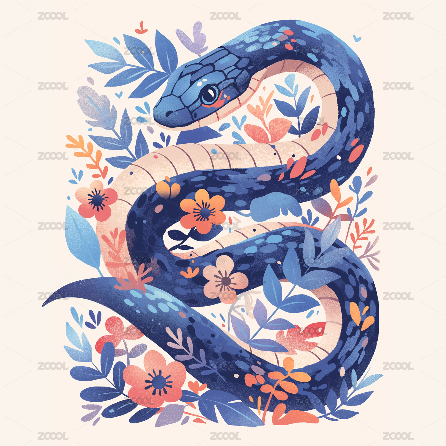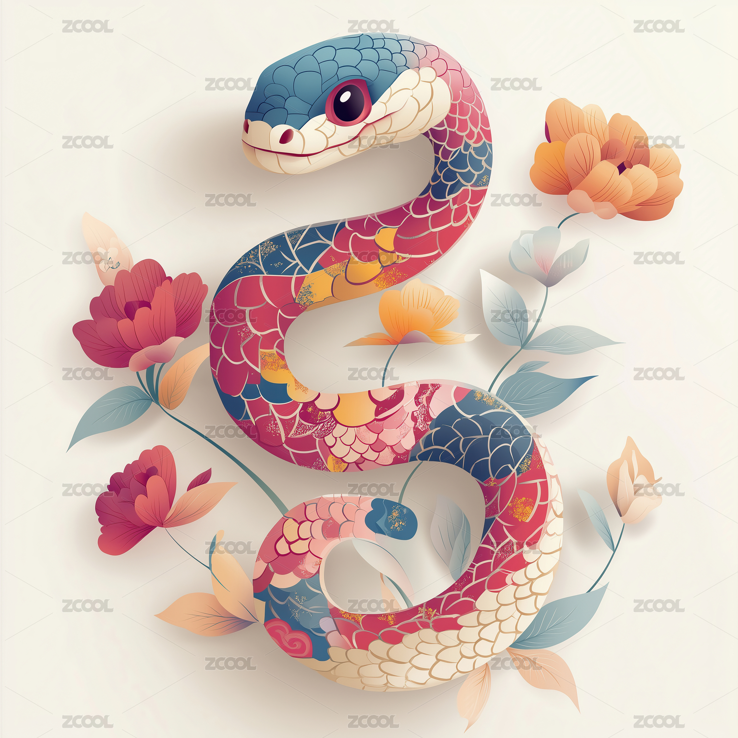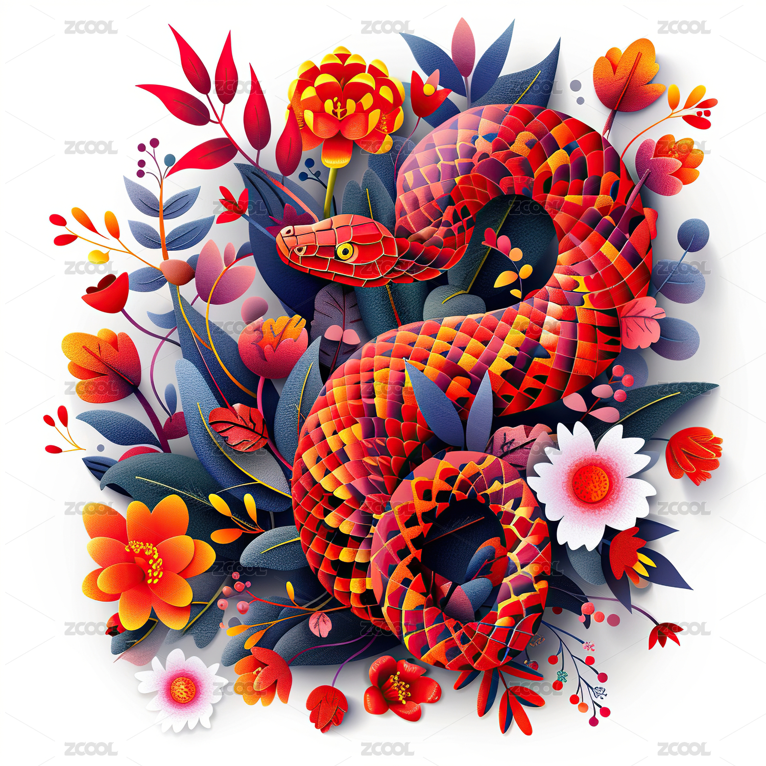 蛇年花卉艺术插画