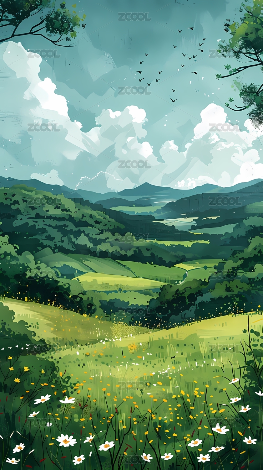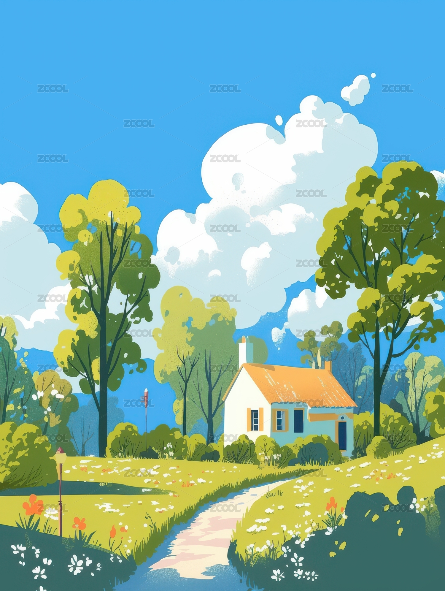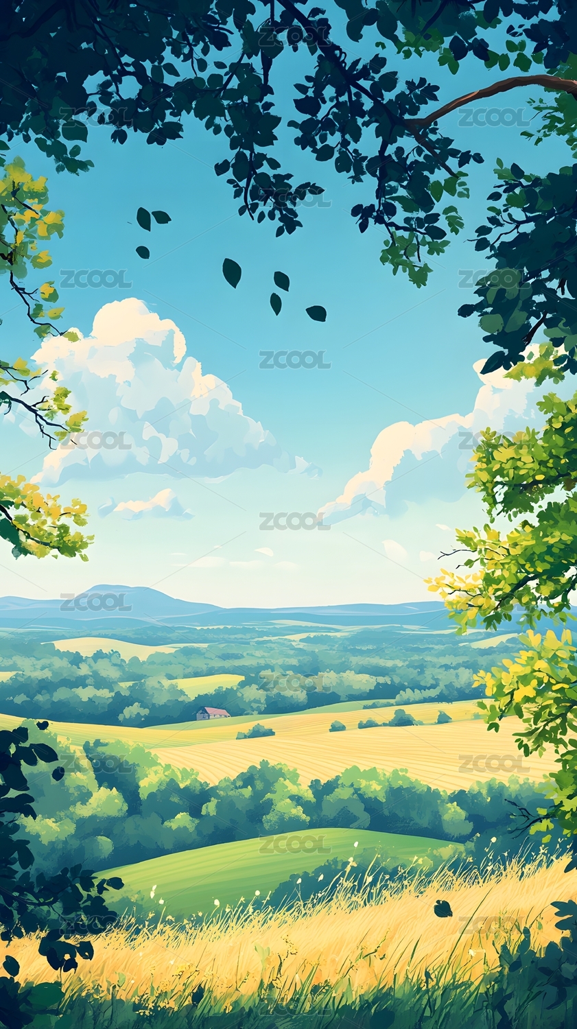 插画,田园,自然,乡村,山林,艺术,挂画,壁画,装饰画,室内