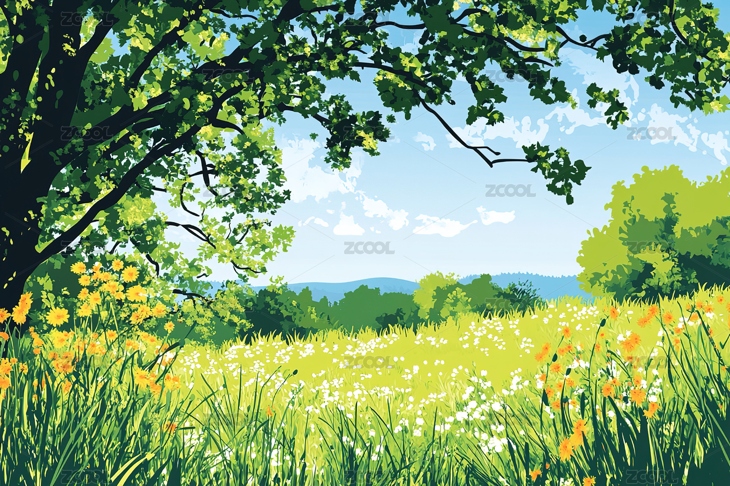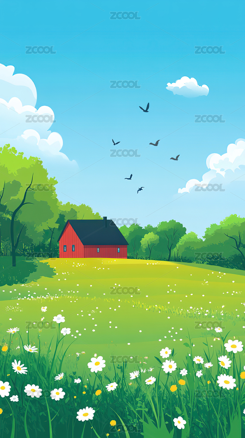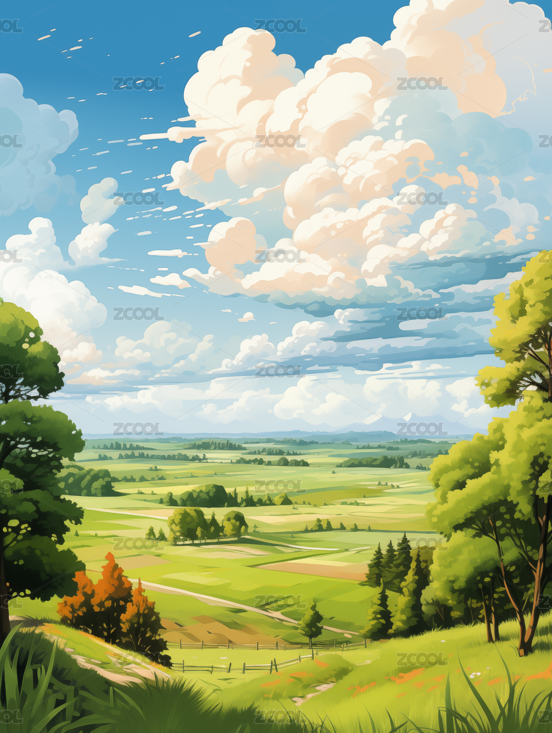 插画,田园,自然,乡村,山林,艺术,挂画,壁画,装饰画,室内