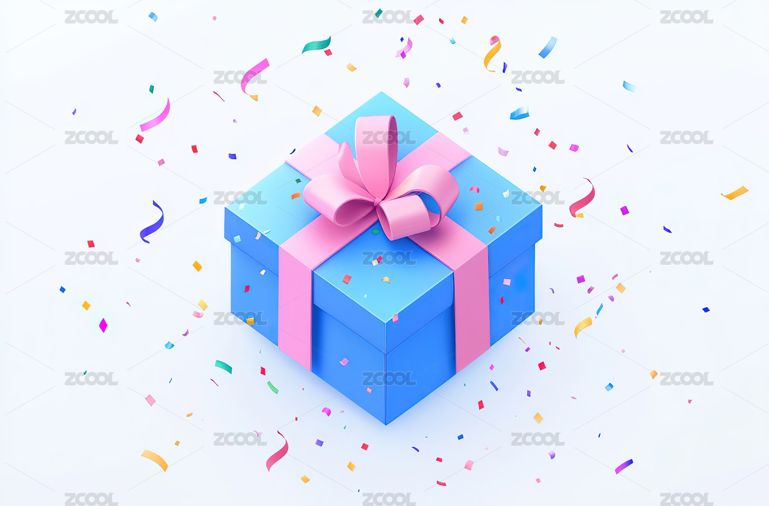 粉色礼物盒与蓝色蝴蝶结 庆祝氛围