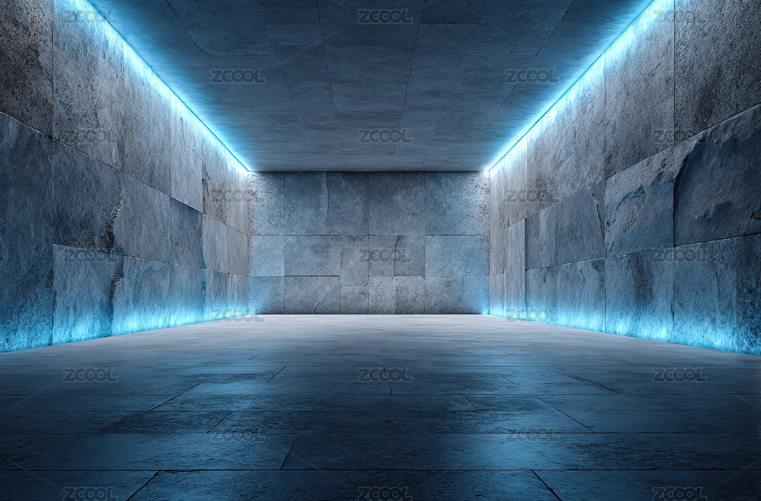 蓝色霓虹灯照亮的空旷空间