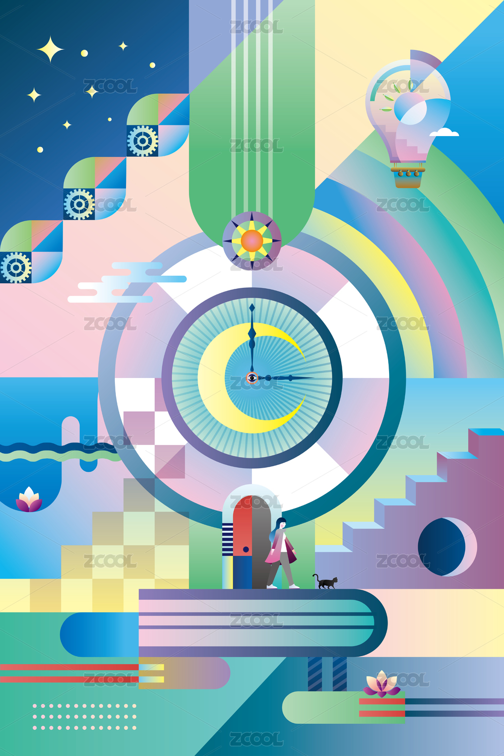 可爱,矢量,符号,图像,平面设计,儿童,插画,热气球,女孩,幻想