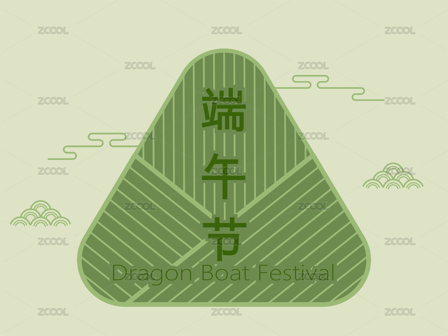 端午节矢量插画,粽子上写着端午节字体