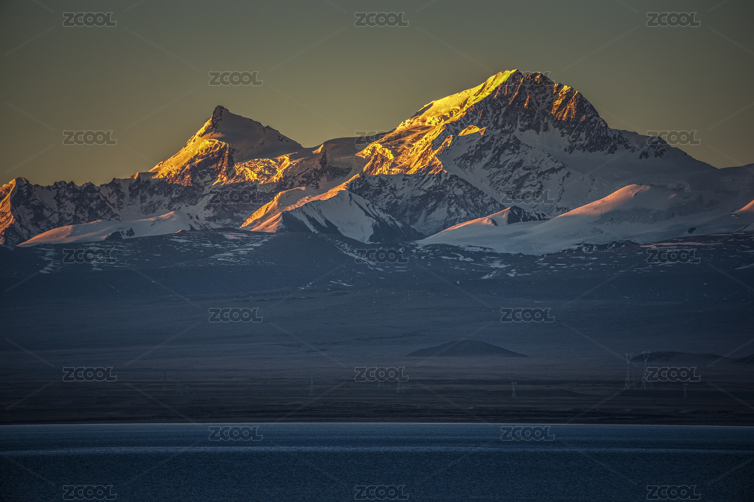 中国西藏日喀则佩枯错与希夏邦马雪山群日出