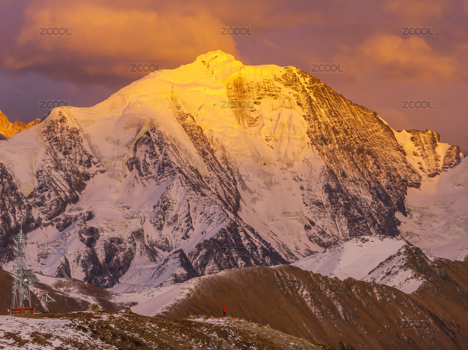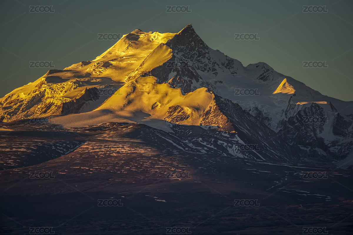 中国西藏珠穆朗玛峰雪山日照金山
