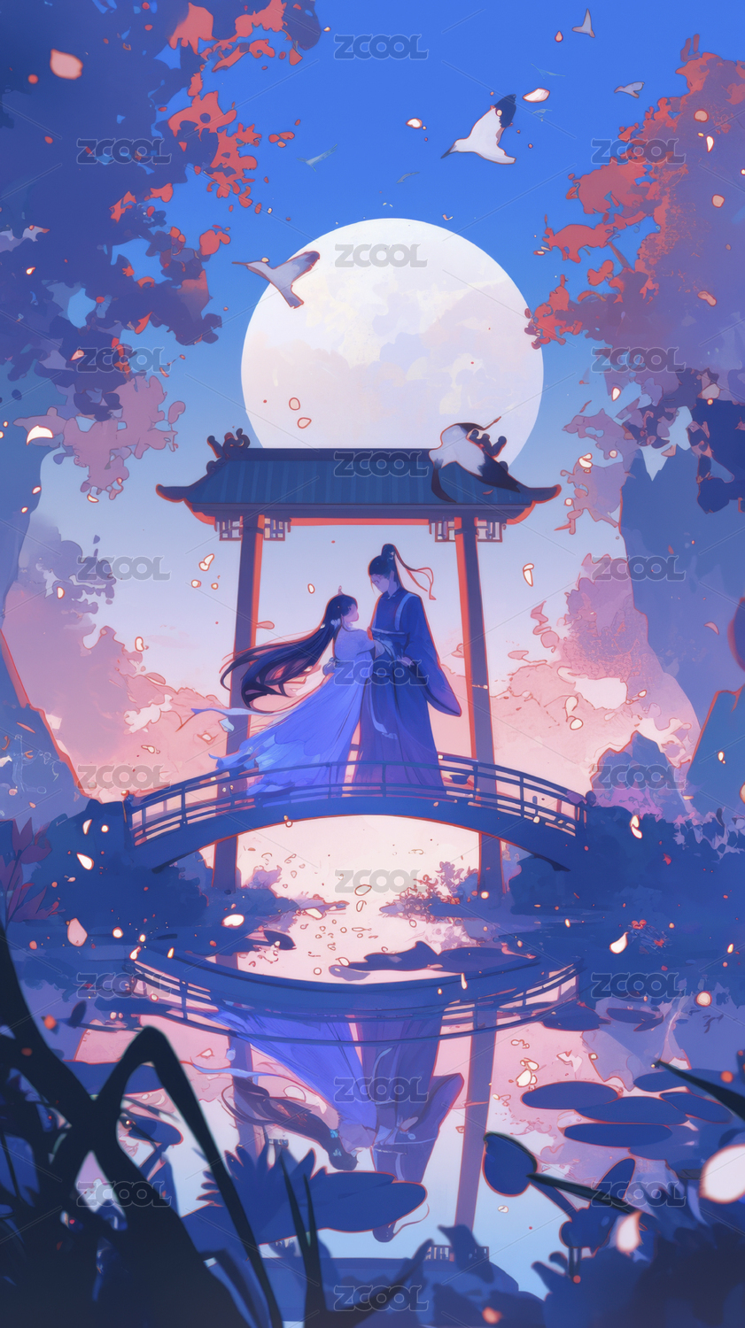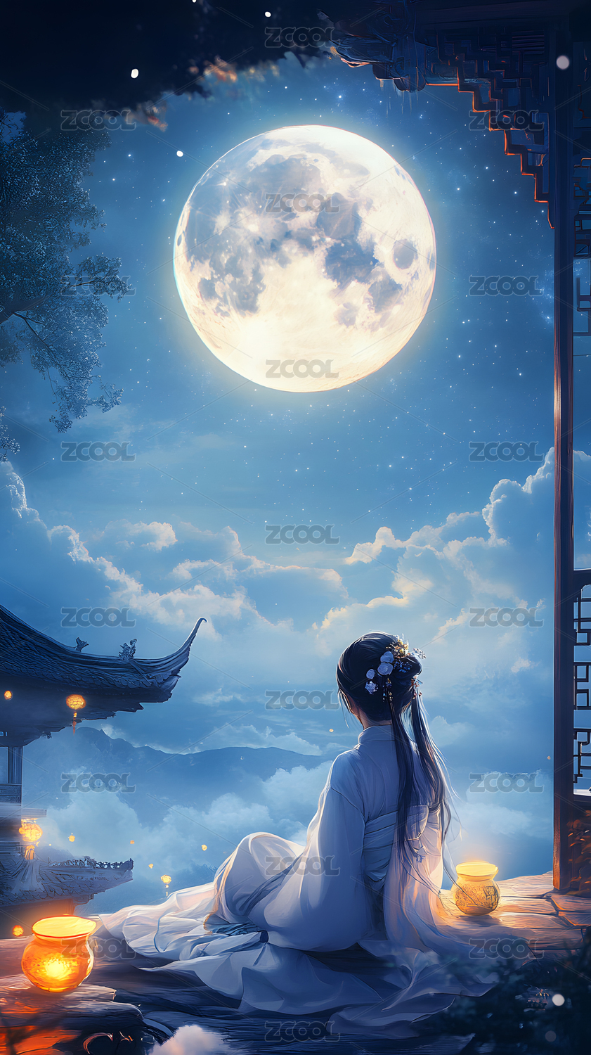 月下佳人赏月祈愿