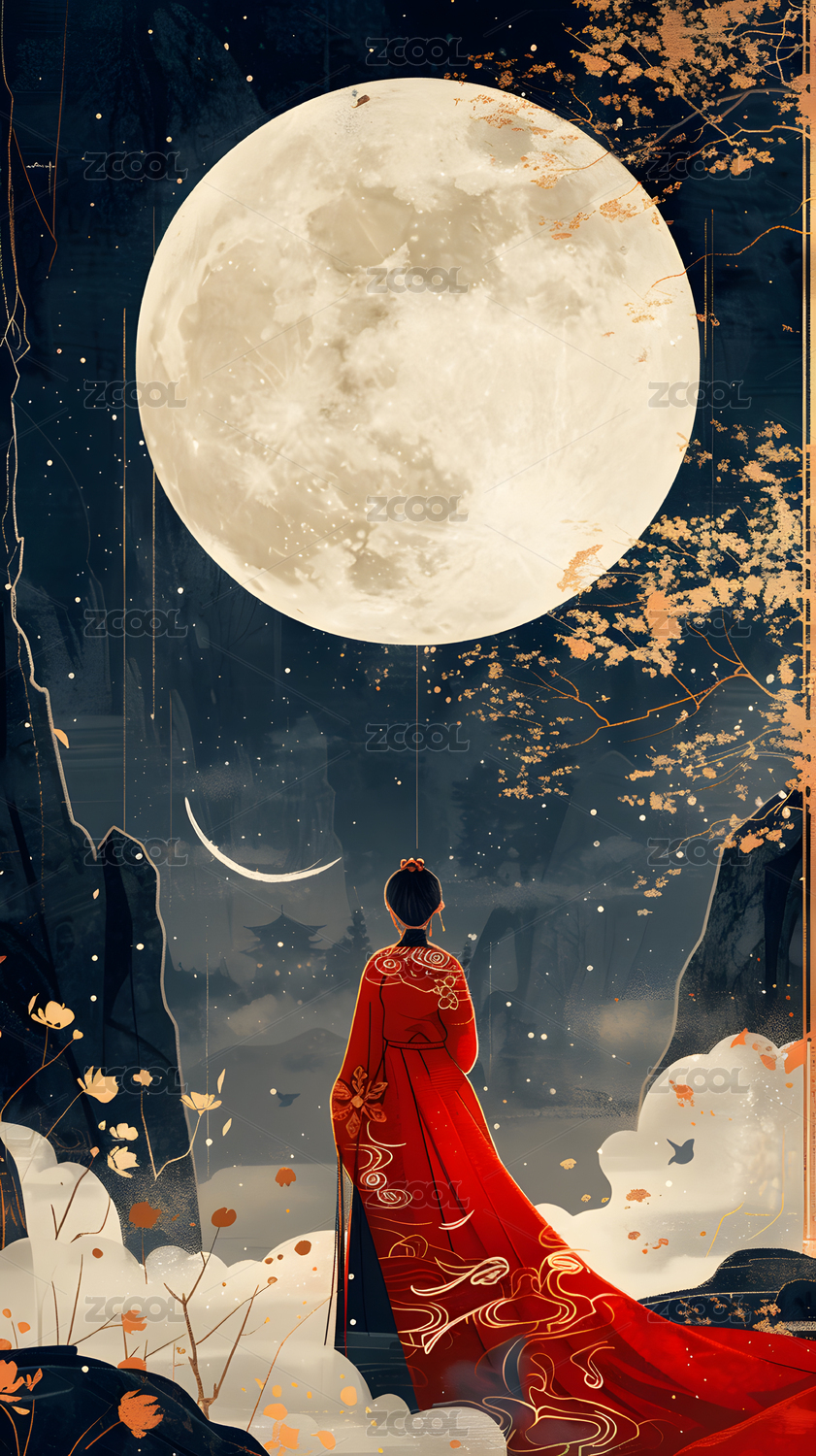 中秋节月亮前的嫦娥仙女