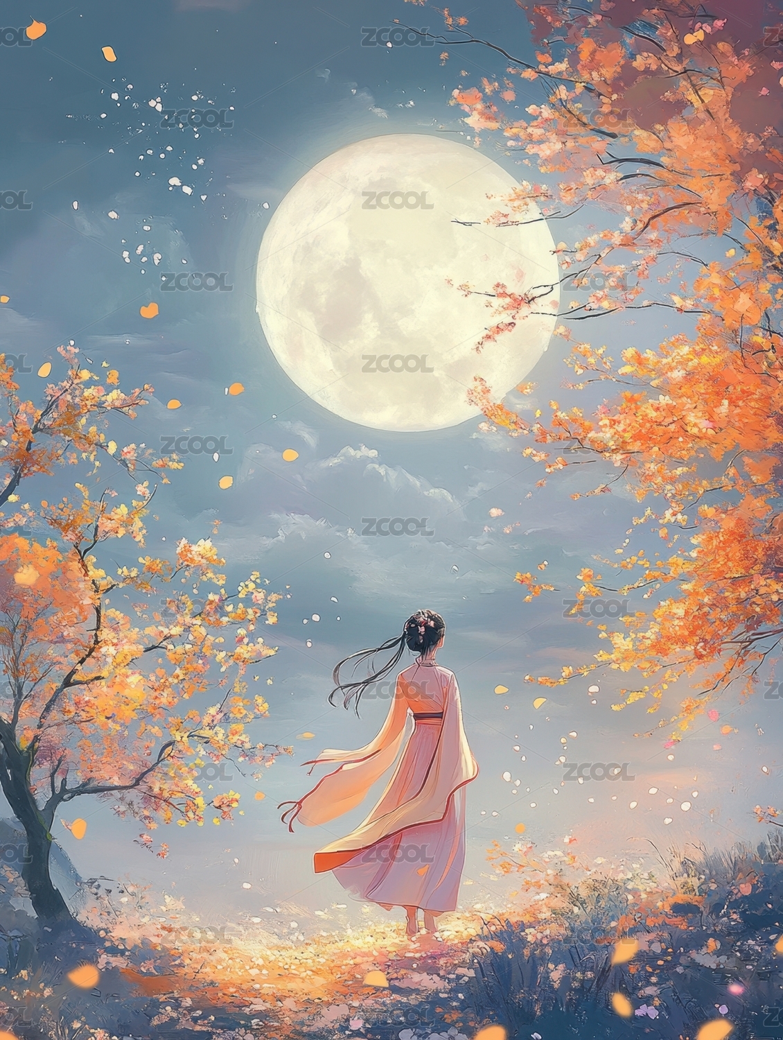 月光下的女子传统服饰唯美意境