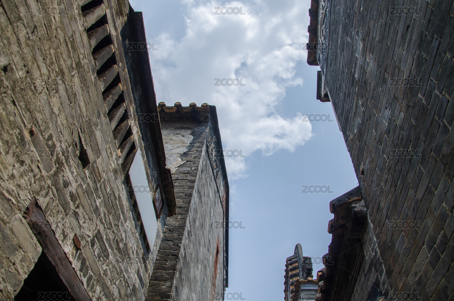 古城古典风格古代建筑门窗局部特写