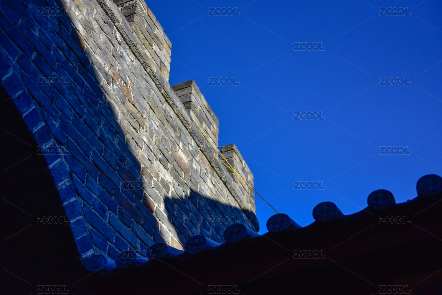 蓝天映衬下的古建筑砖墙与瓦顶