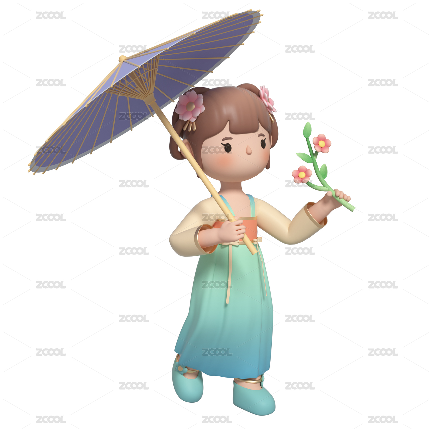 下雨啦插画手绘女性小女孩国风雨水打伞