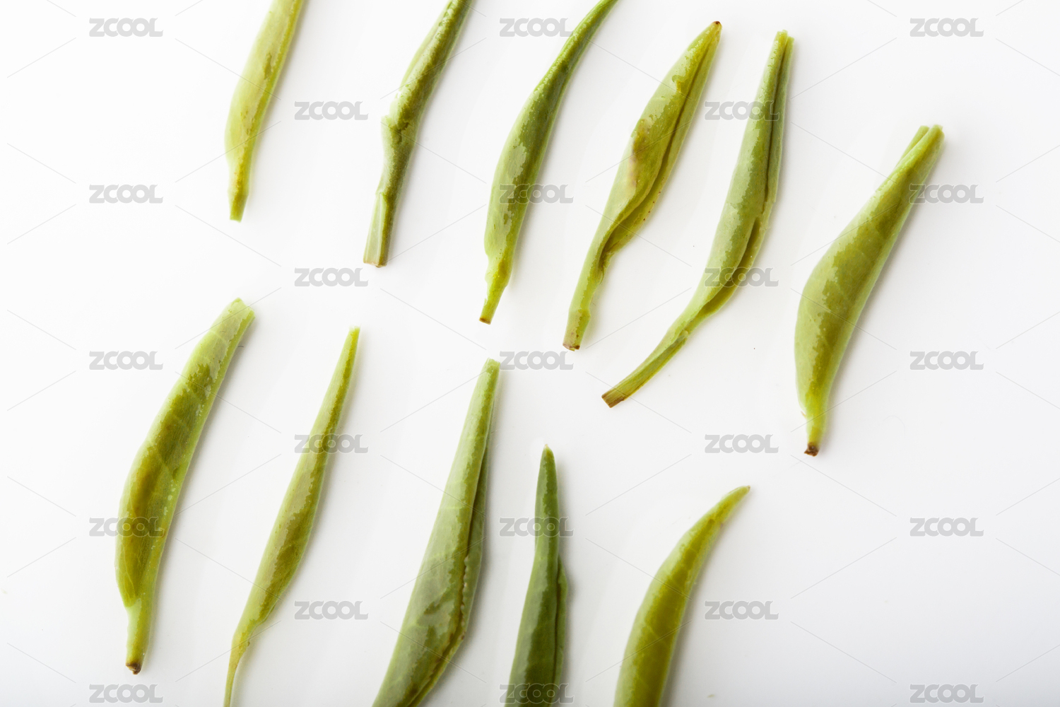 白色盘子中西湖龙井绿茶叶底近距离展示