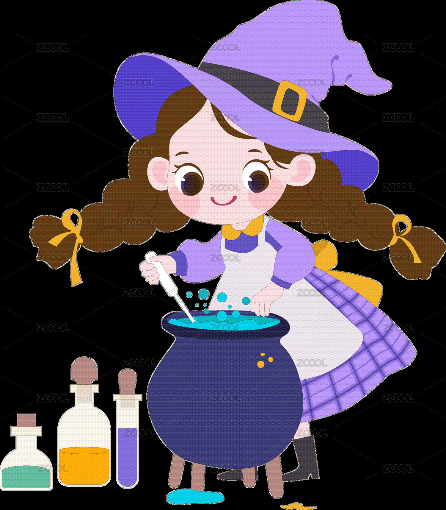 万圣节小女巫做魔法实验可爱女孩儿童卡通插