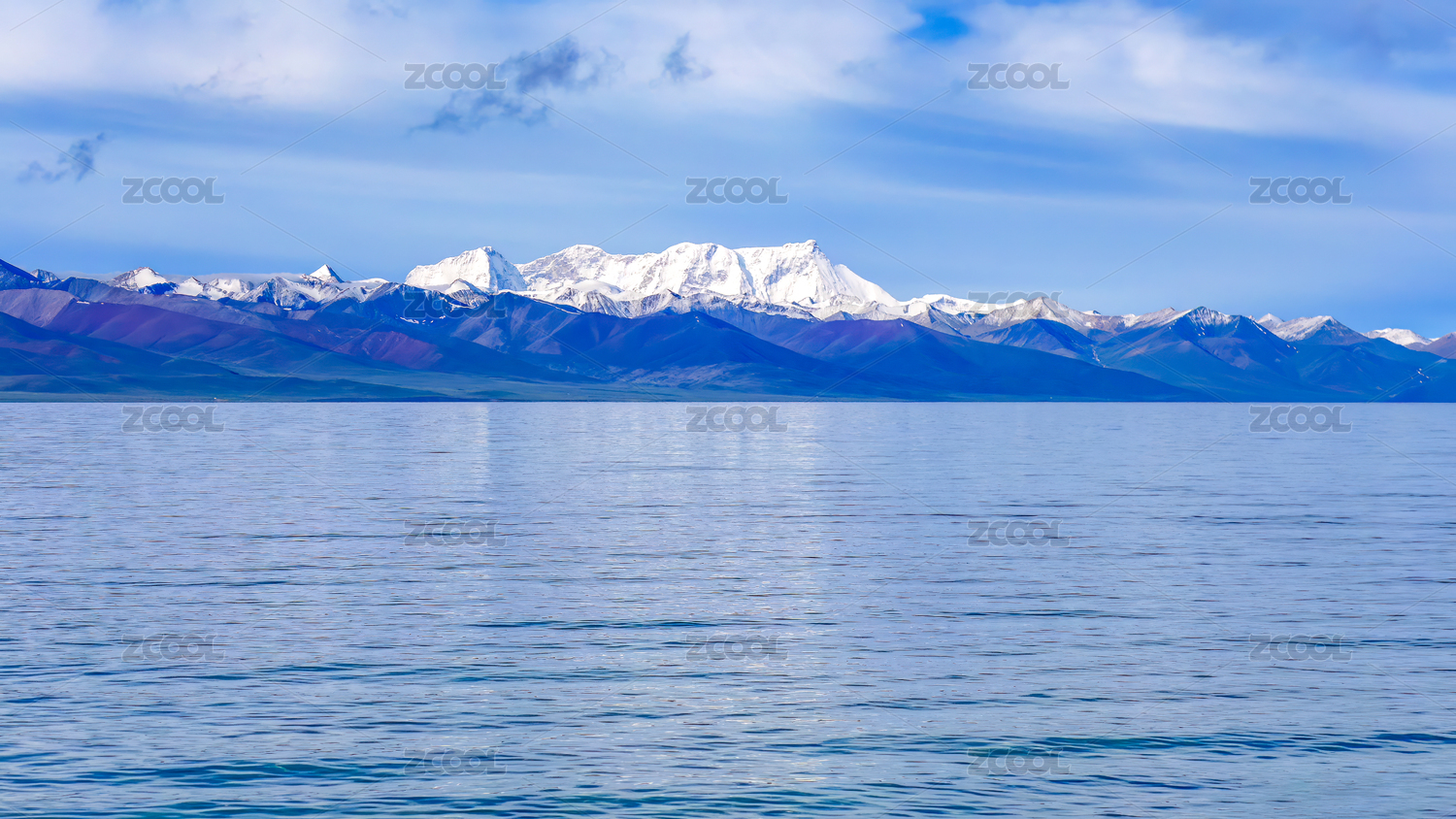 中国新疆赛里木湖蓝天白云雪山湖泊风光