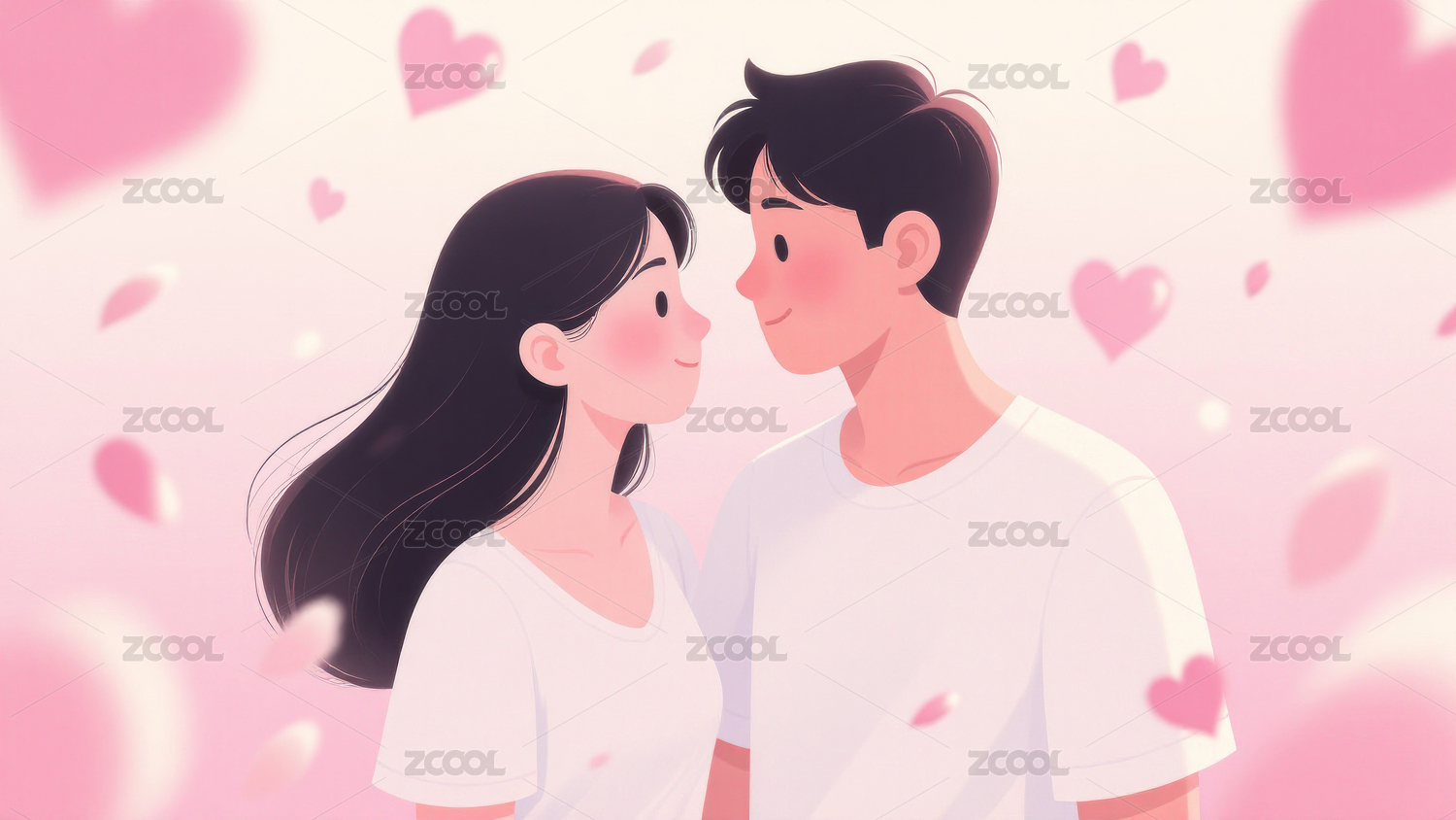插画,平面,依偎,情侣,男孩,女孩,情人节,校园情侣,青春,初恋