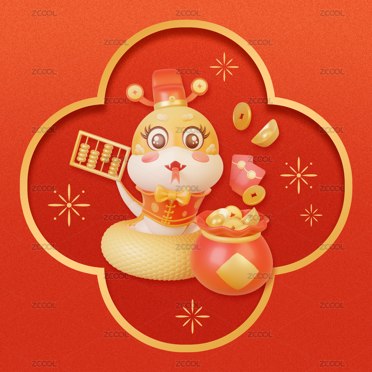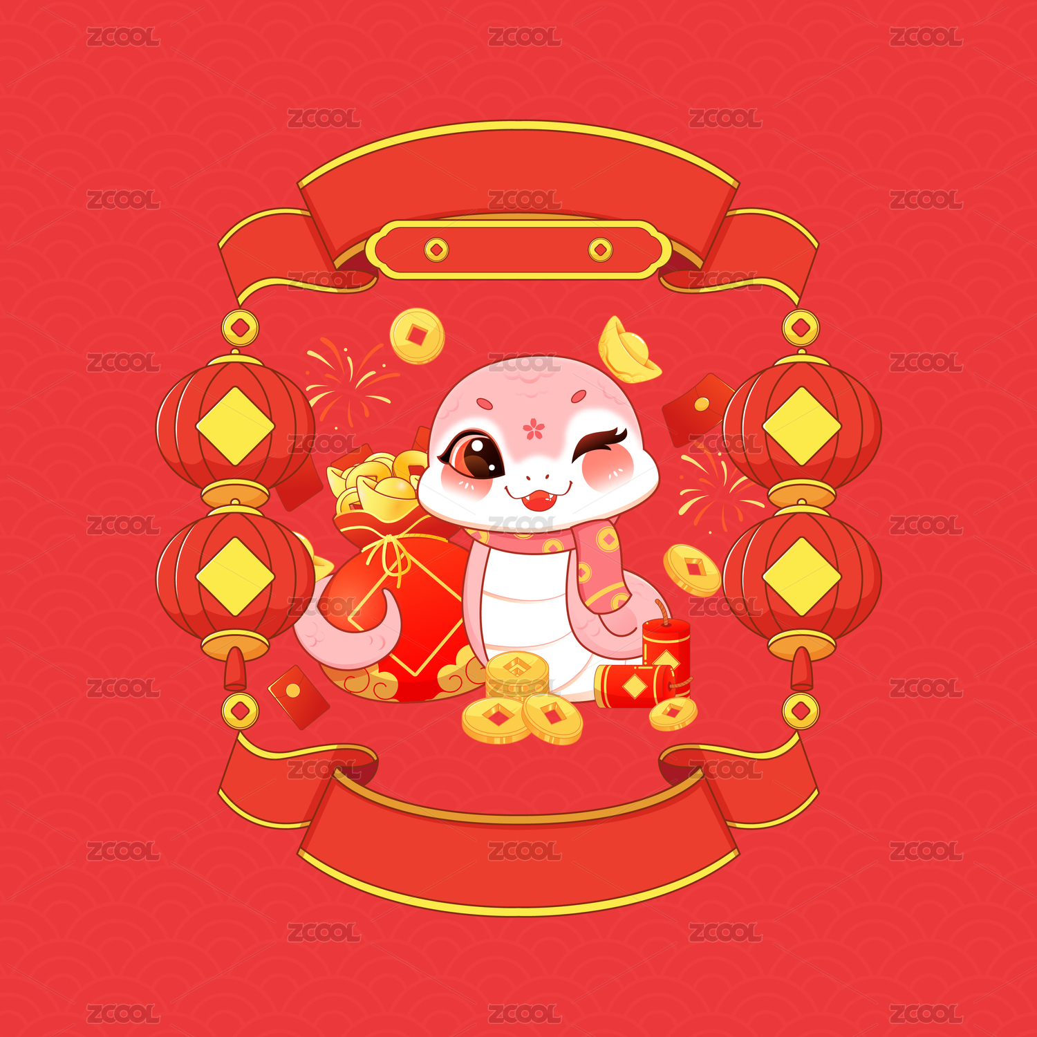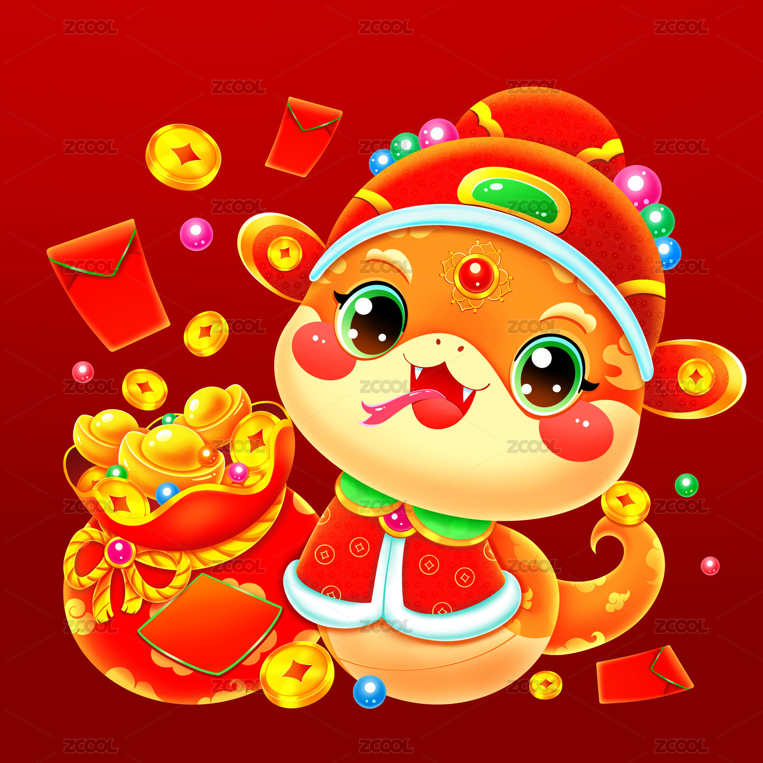 国潮春节新年可爱卡通红包蛇金蛇插画