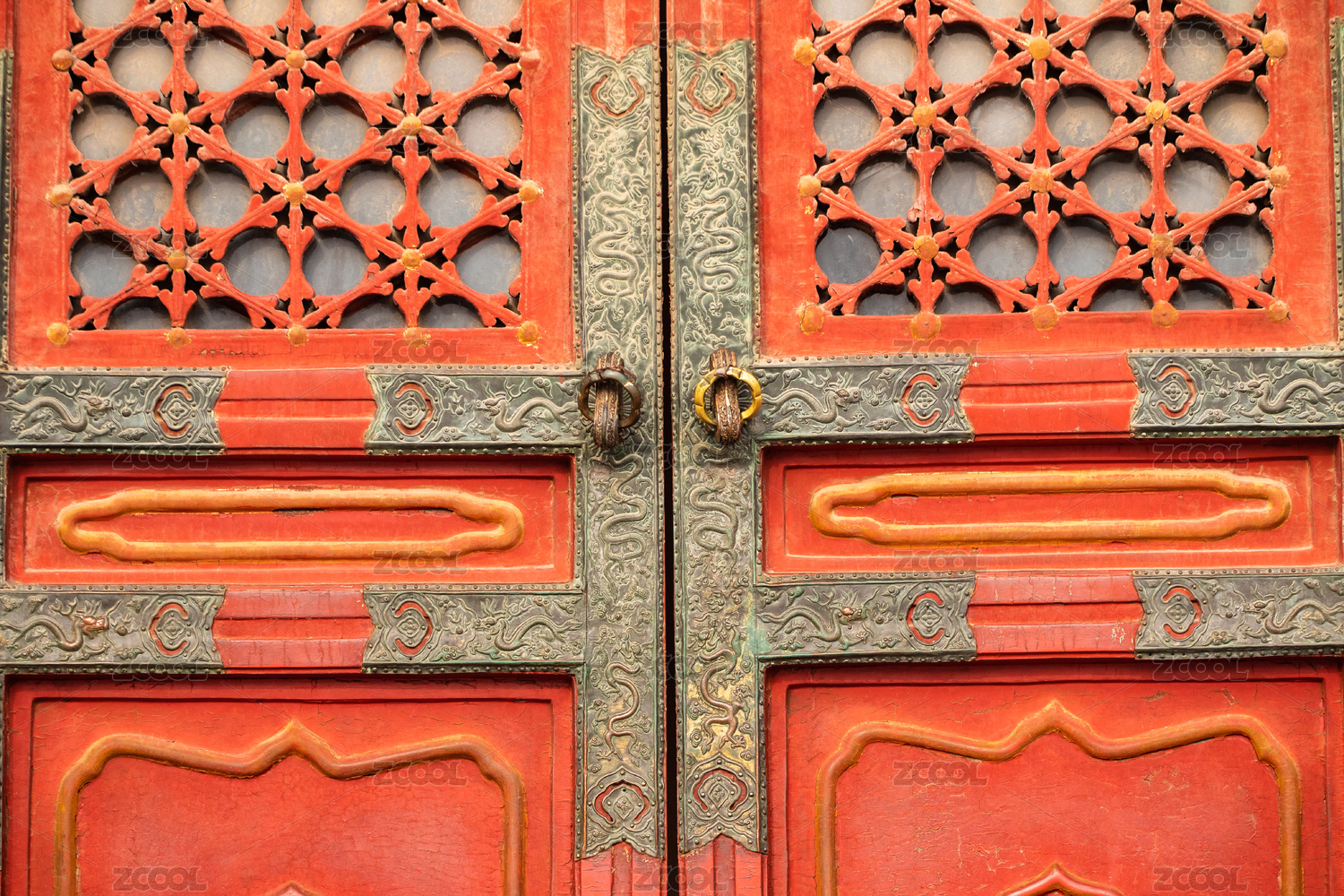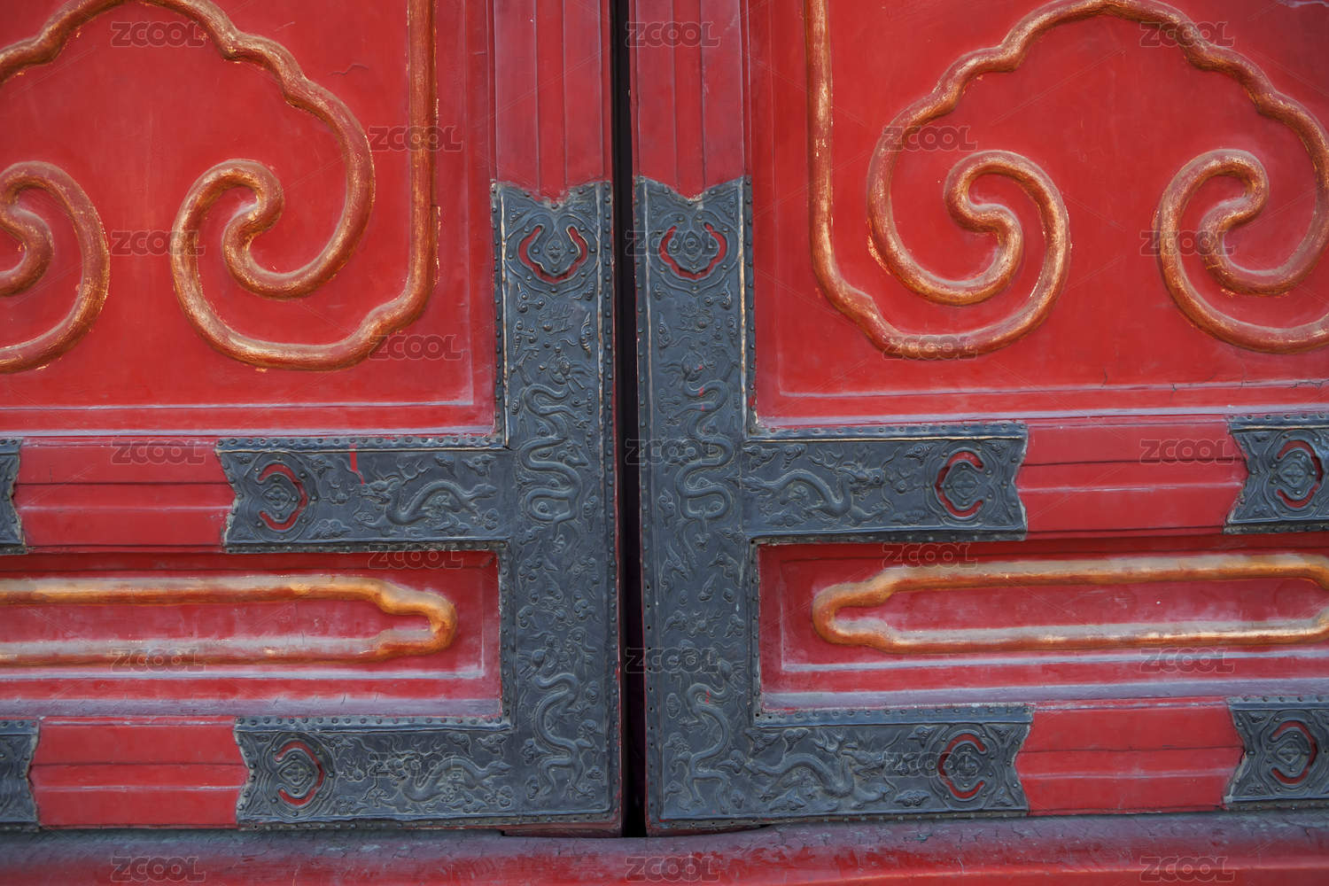 中国故宫的木雕金边红门