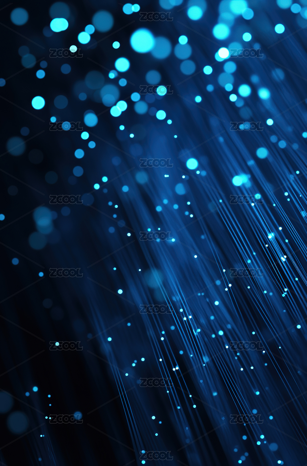 黑色背景下被照亮的蓝色光纤的特写镜头