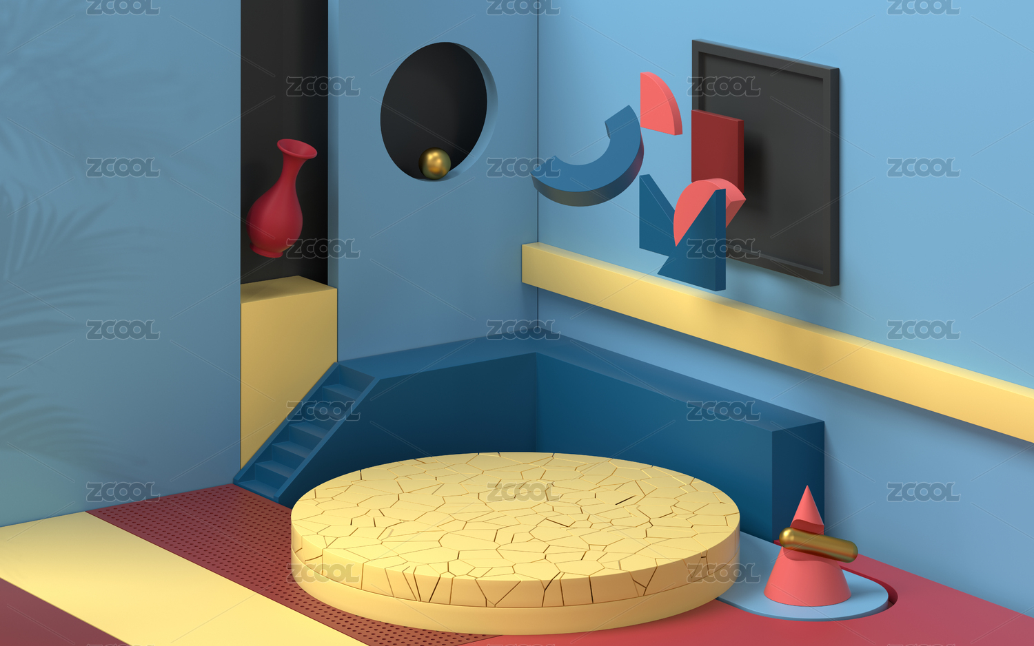 3D场景,模型,几何,组合,背景,展示柜,舞台,促销,小场景,乐园
