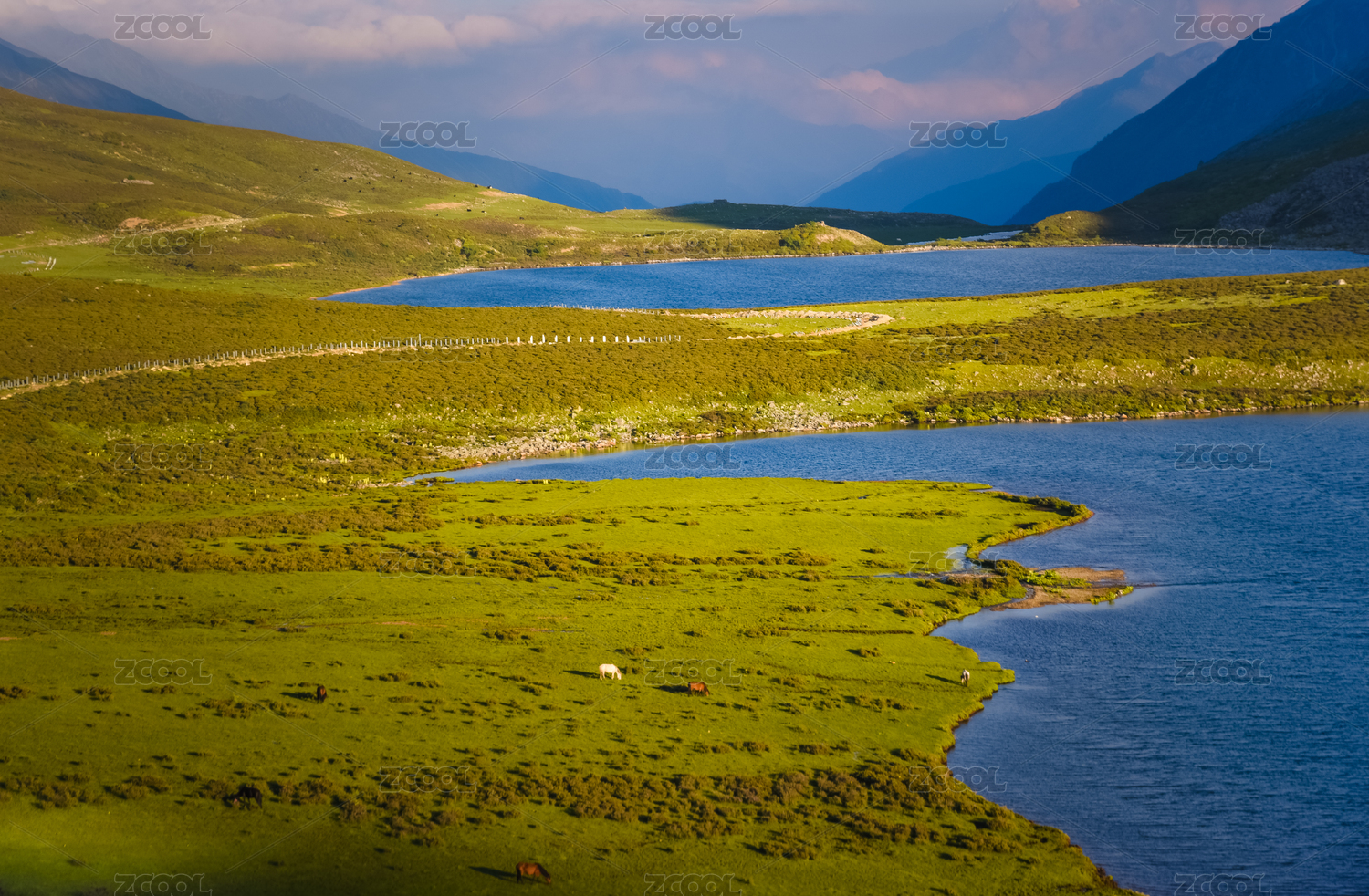 四川甘孜藏族自治州夏天草原山水雪山自然风