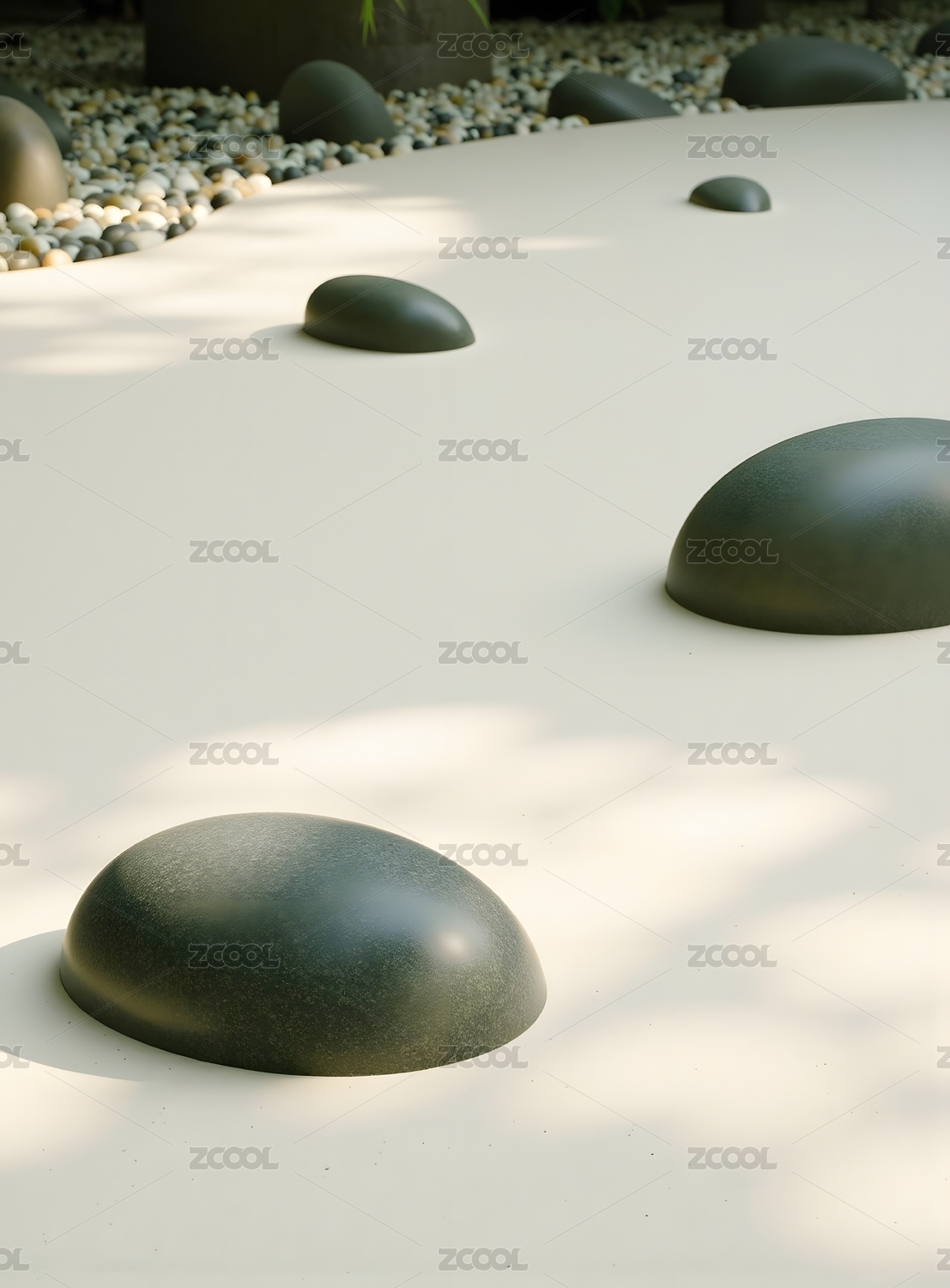 光滑卵石与光影交织