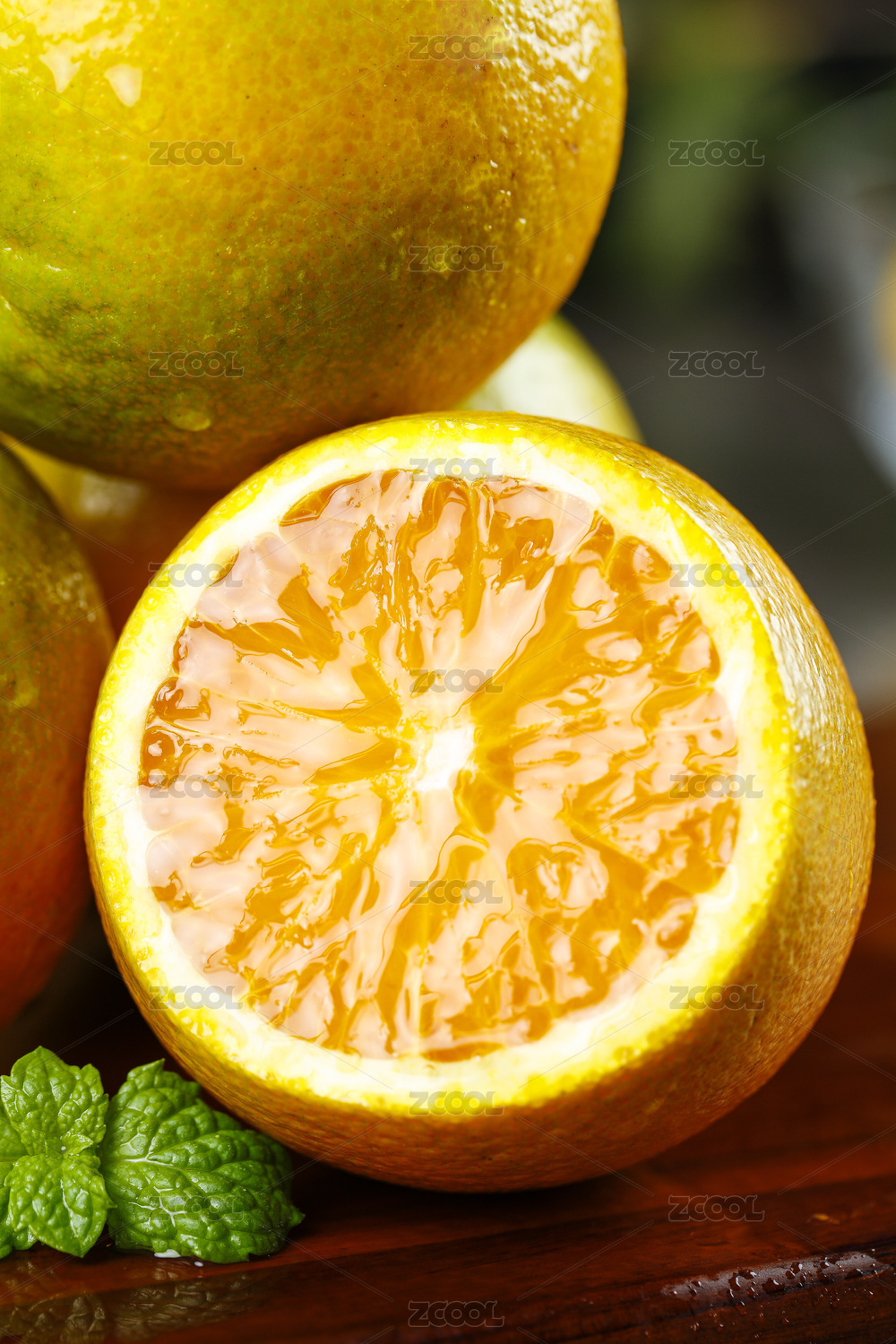 深底上放着一堆云南冰糖橙和一个切面青橙