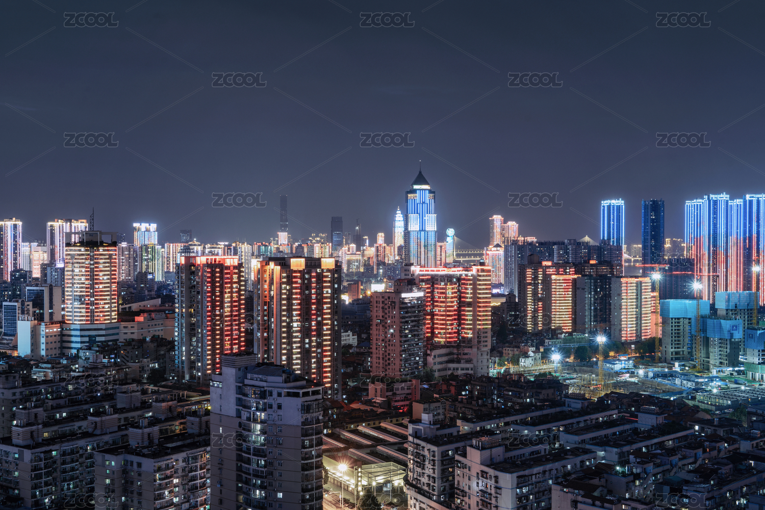 中国江苏省南京市江北新区黄昏高楼大厦建筑