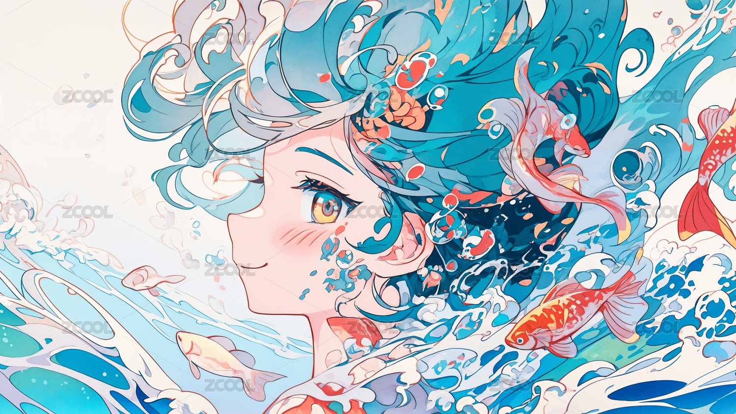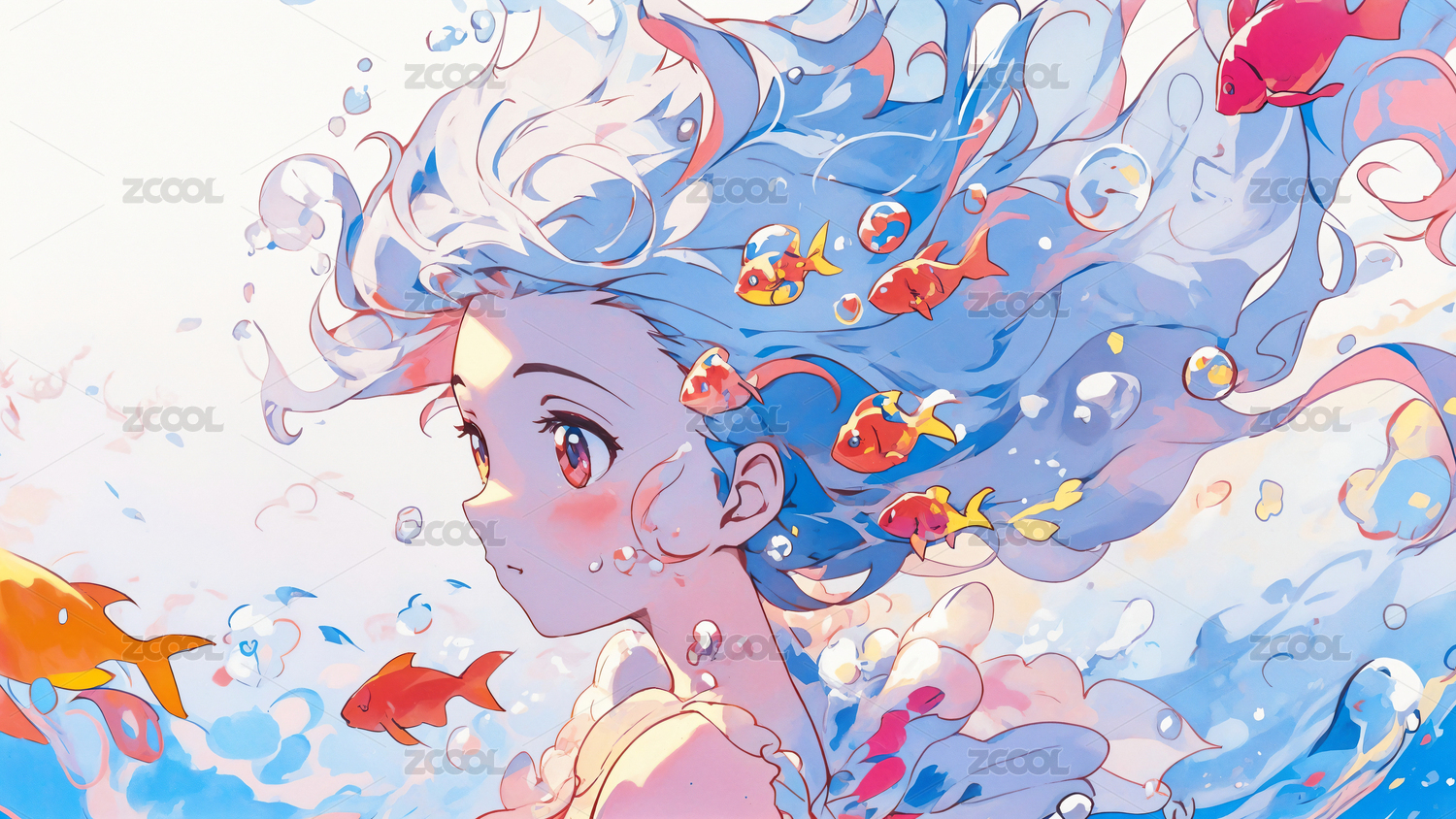 女孩,二次元,少女,唯美,梦幻,柔美,水底,鱼群