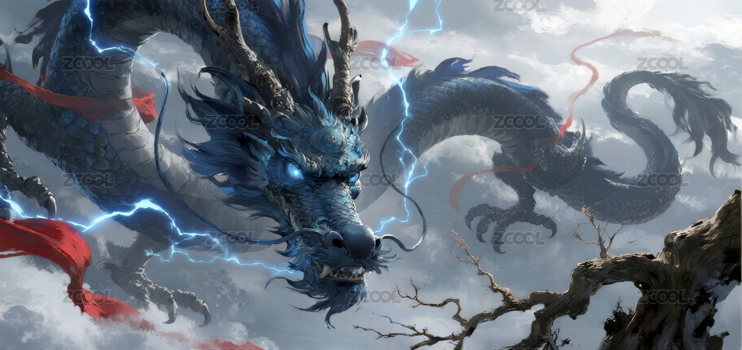 龙,壮观,震撼,奇幻,梦幻,金黄色,雷电,凶猛