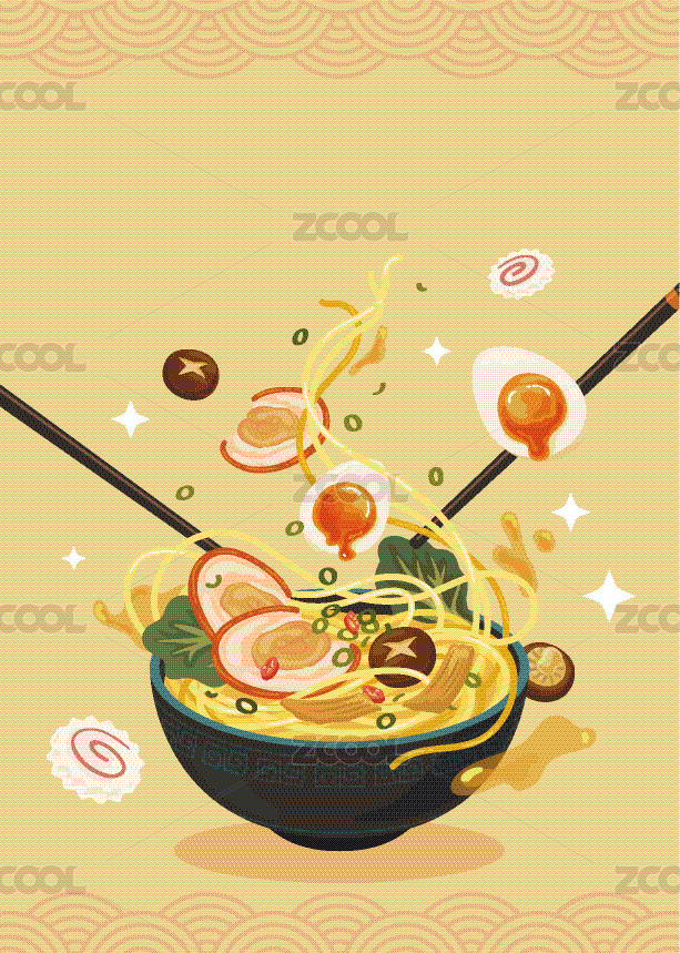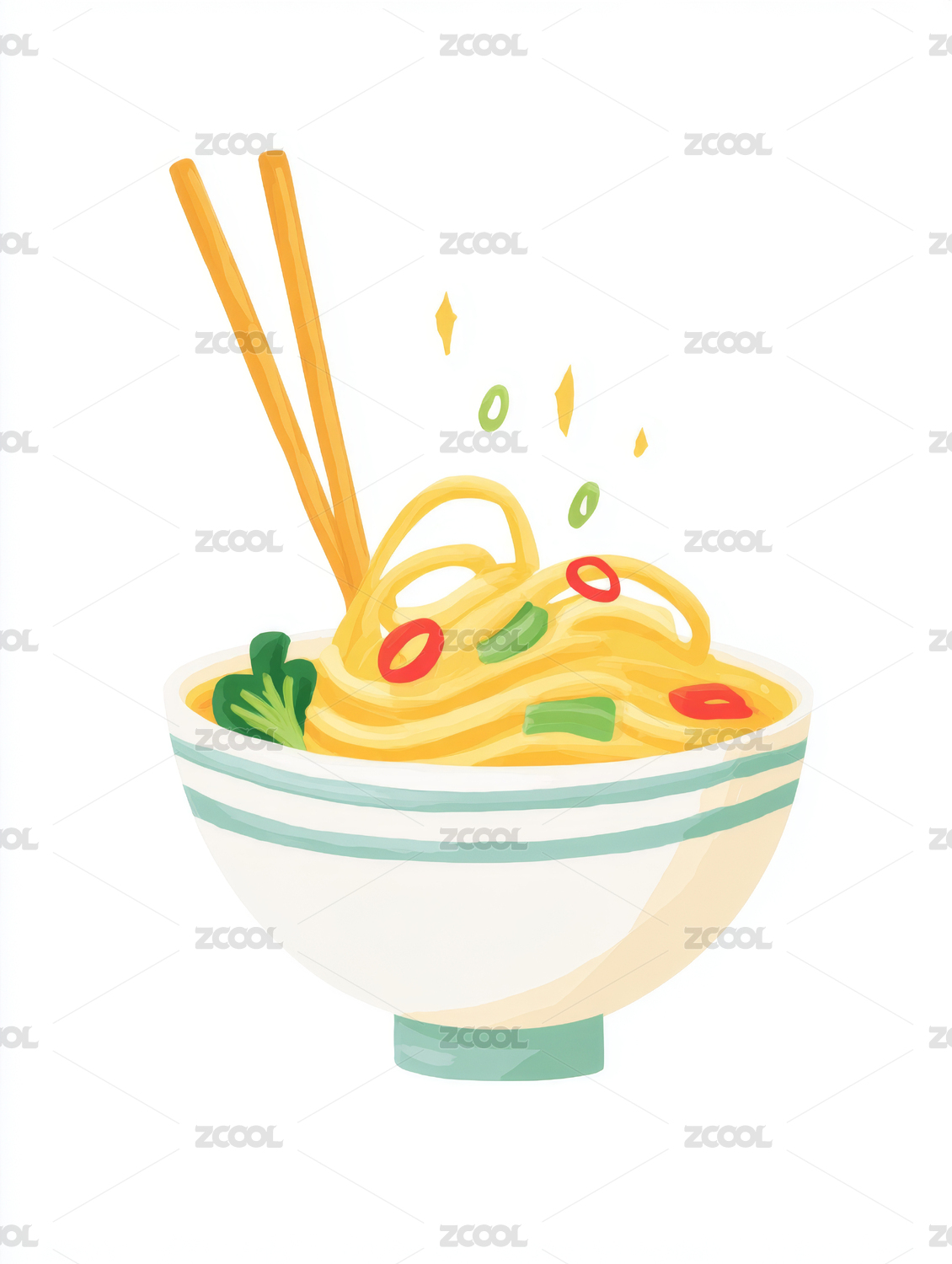 国潮,插画,美食,新中式,面条,面,国风,食物